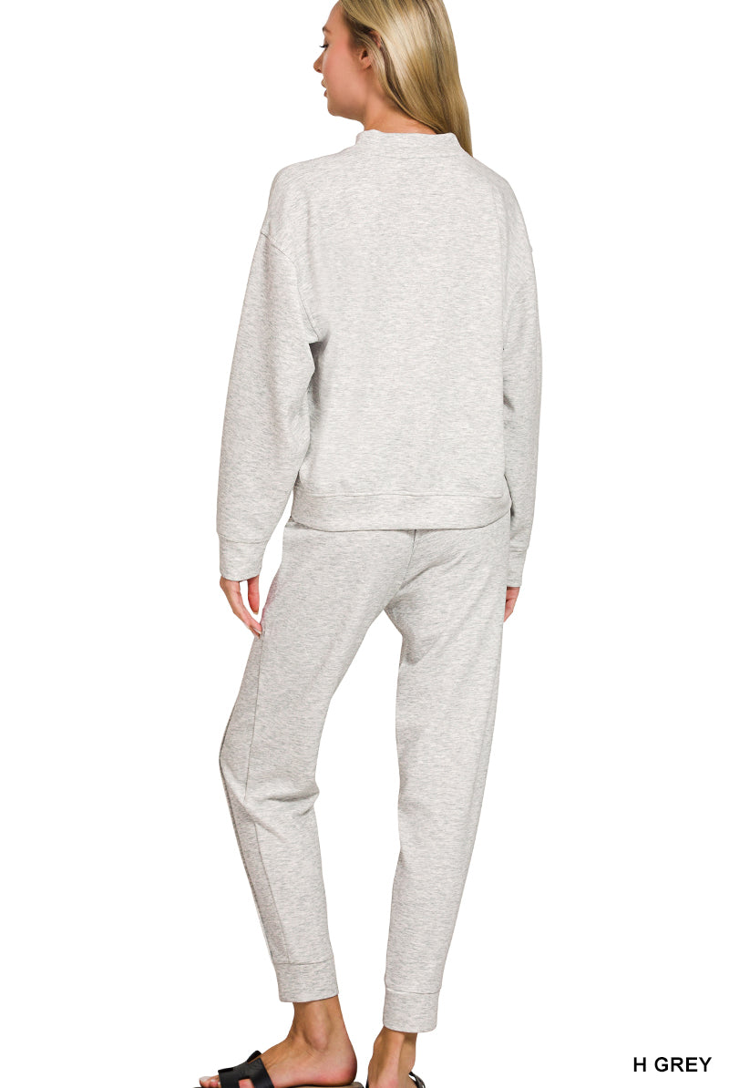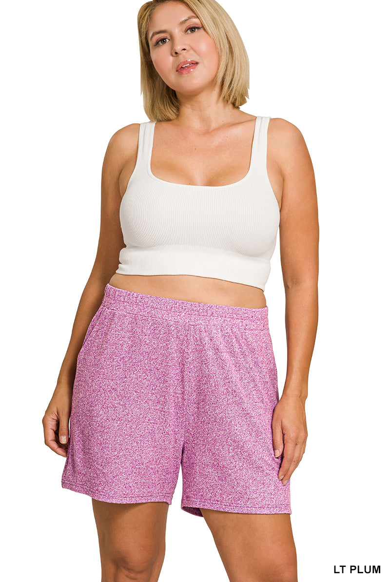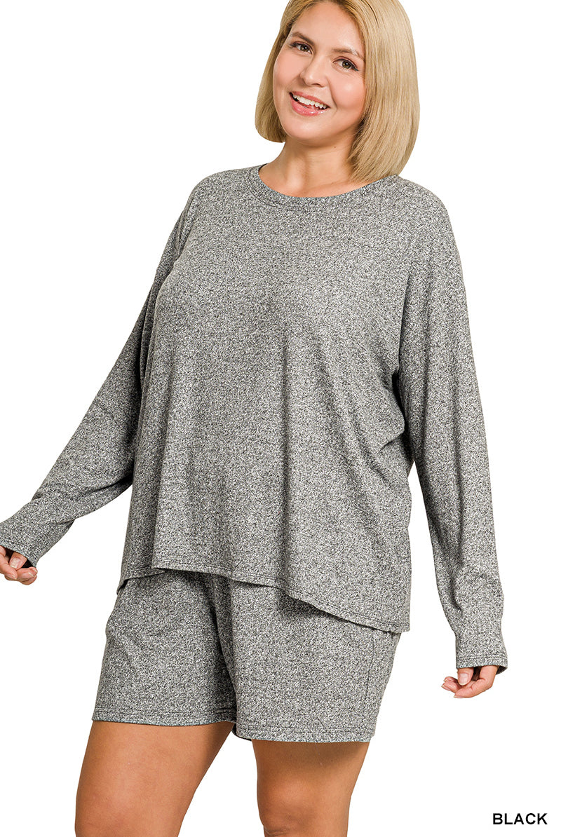 Zenana Plus Soft Melange Long Sleeve Tee & Shorts Set