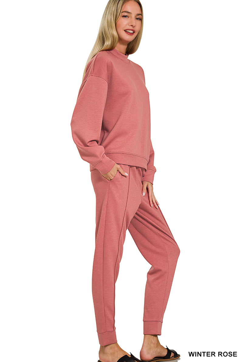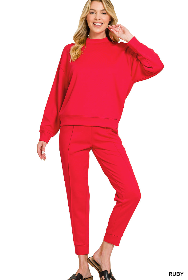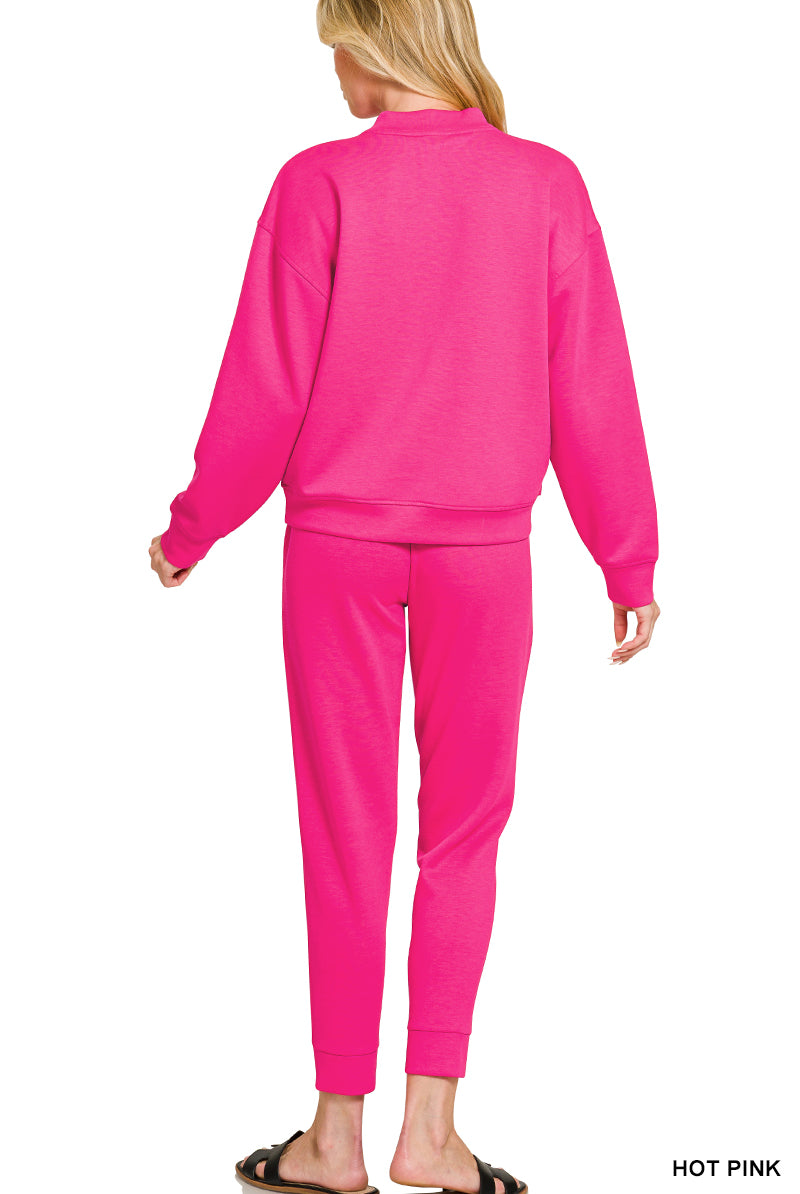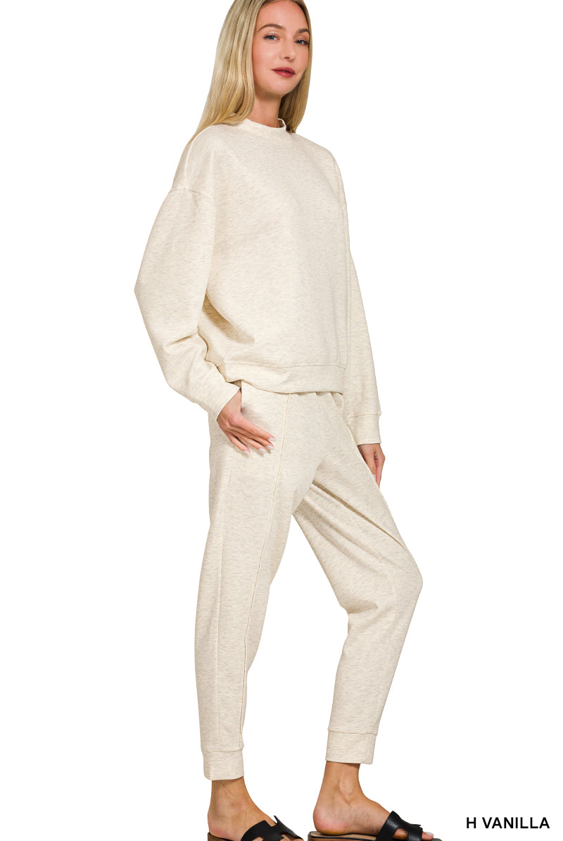 Zenana Plus Soft Melange Long Sleeve Tee & Shorts Set