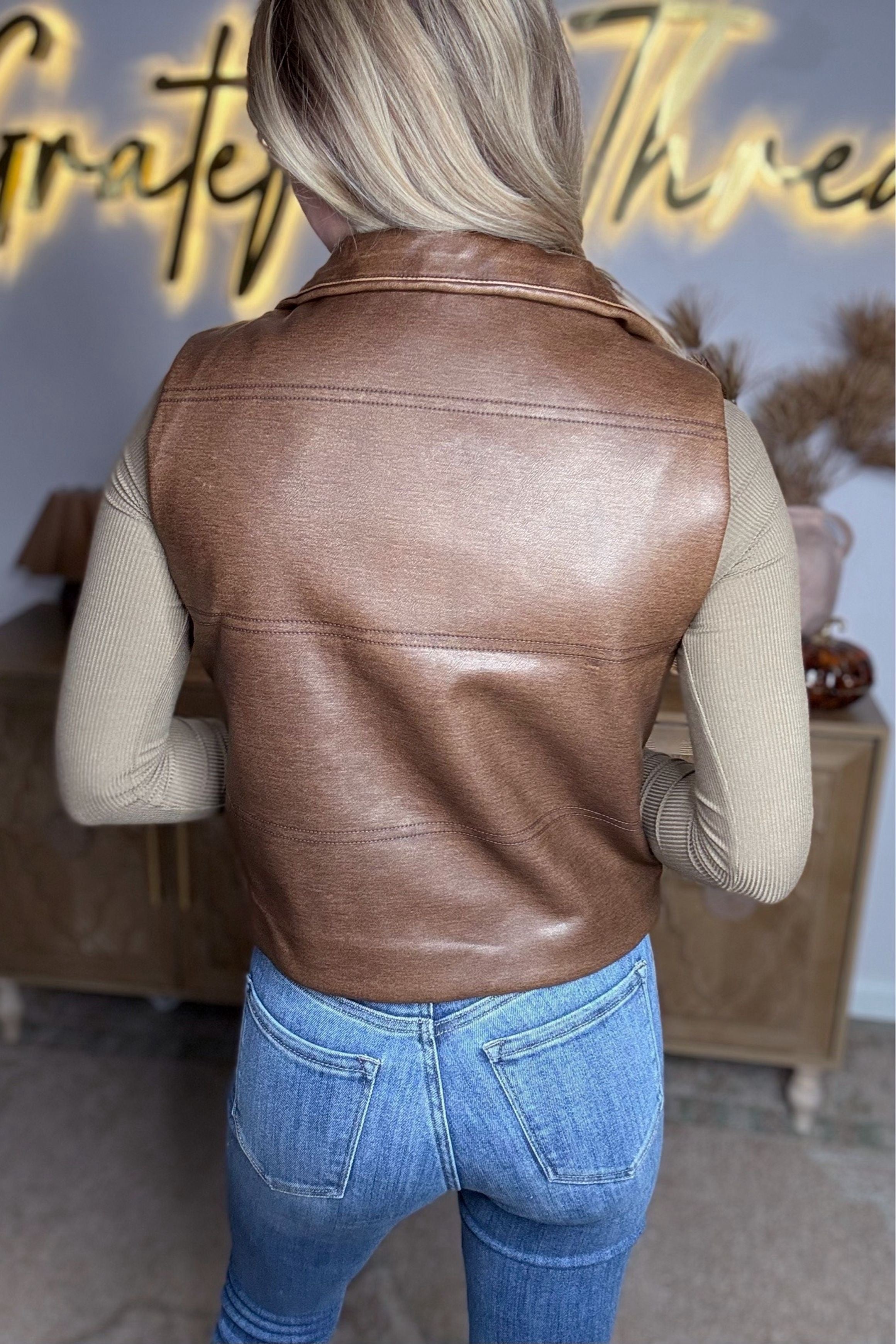 Active Basic | Active USA - Wash Effect Faux Leather Vest in Hazelnut
