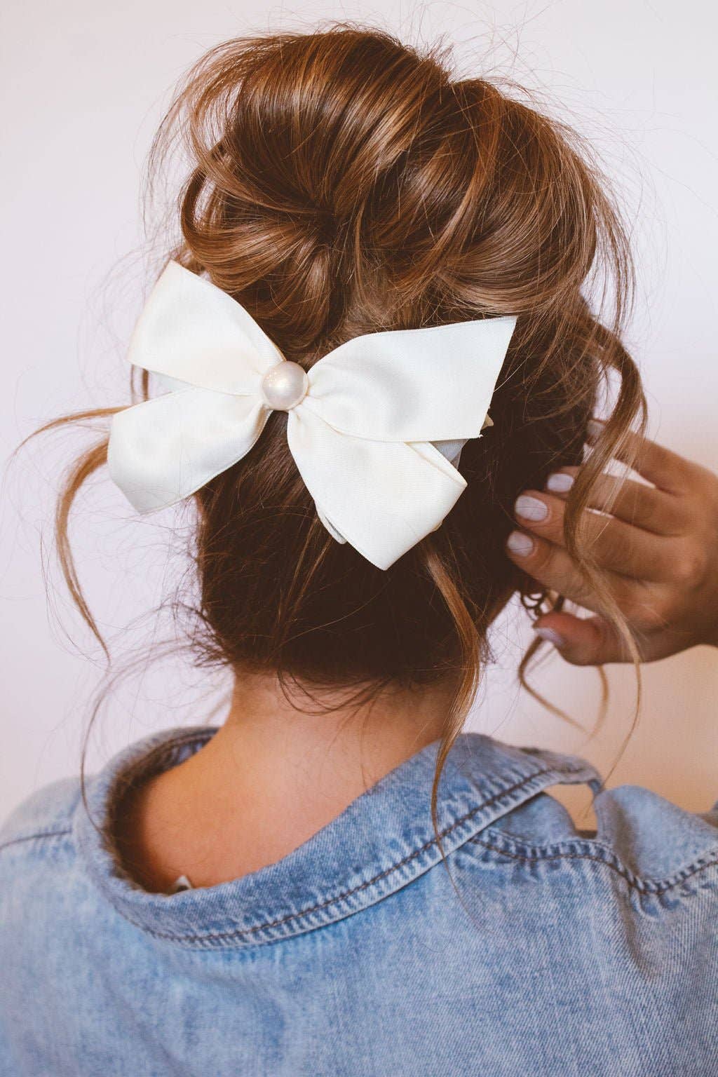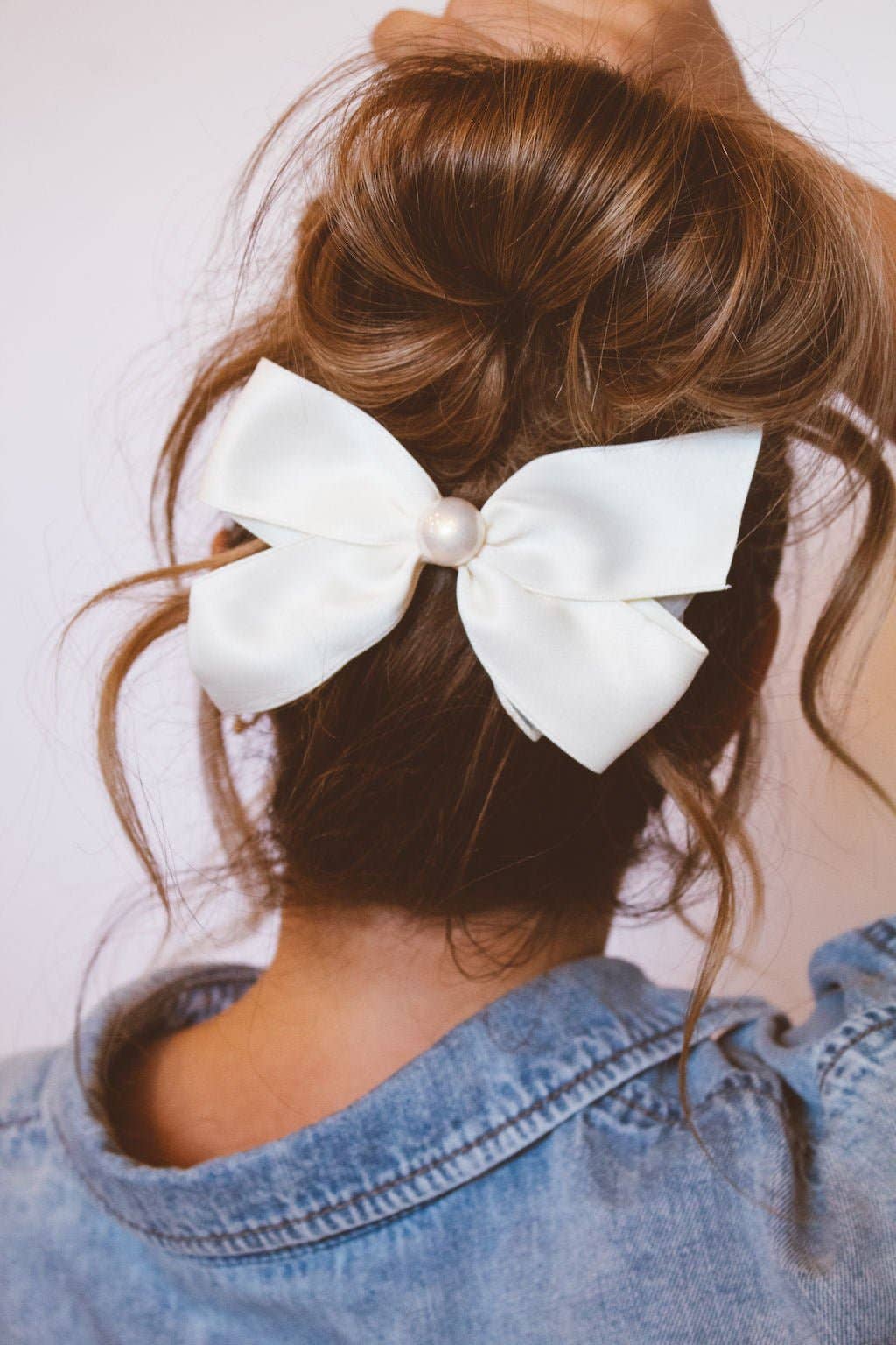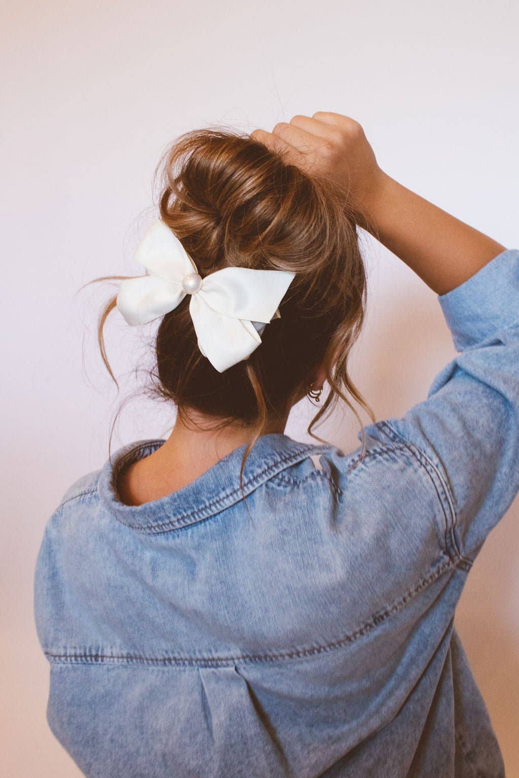 Shop ANDi - Pearl Long Bow Clip: Cream