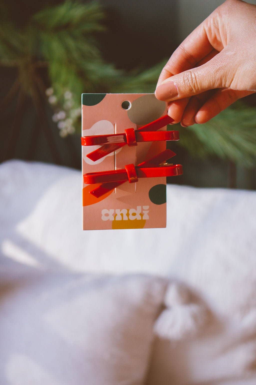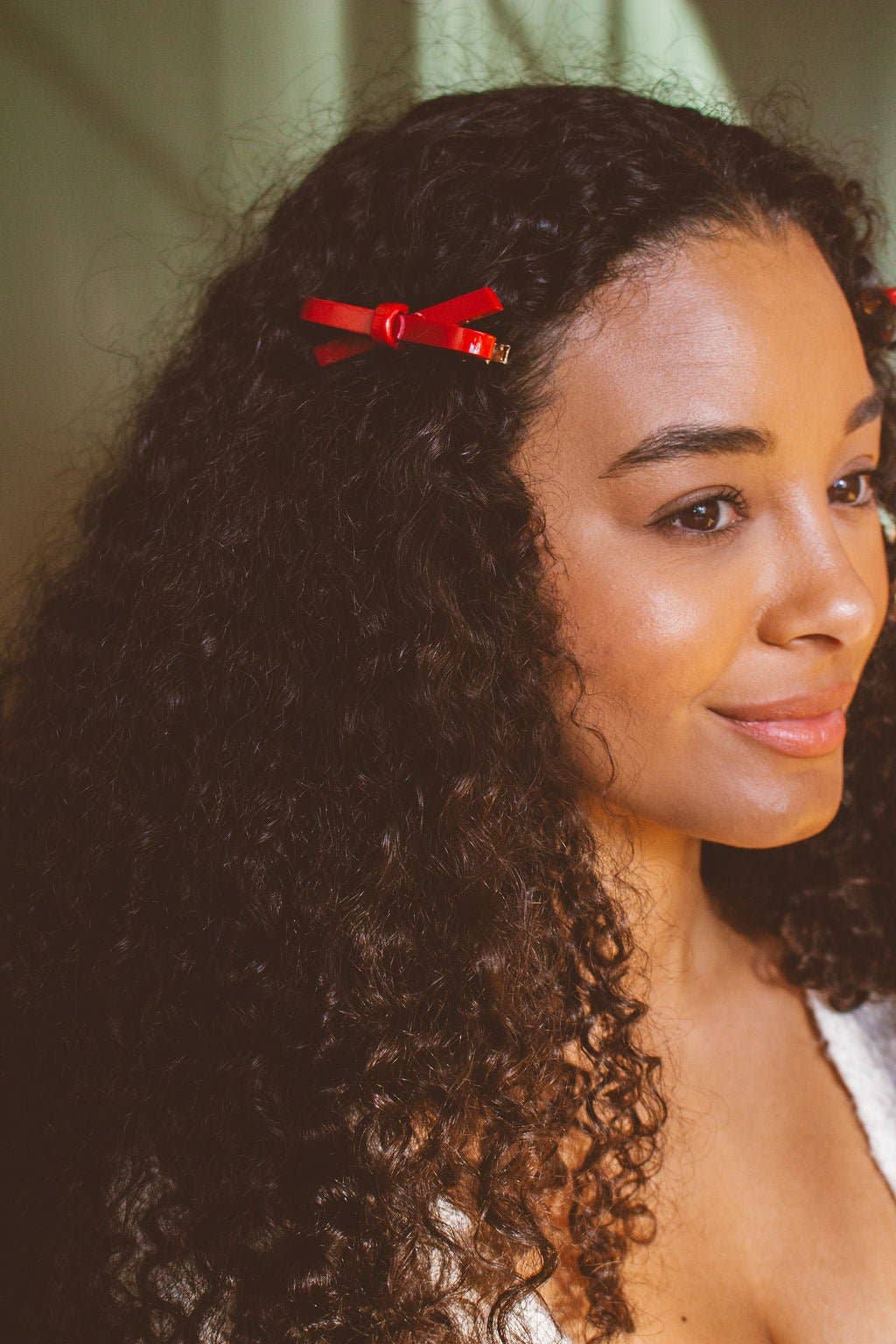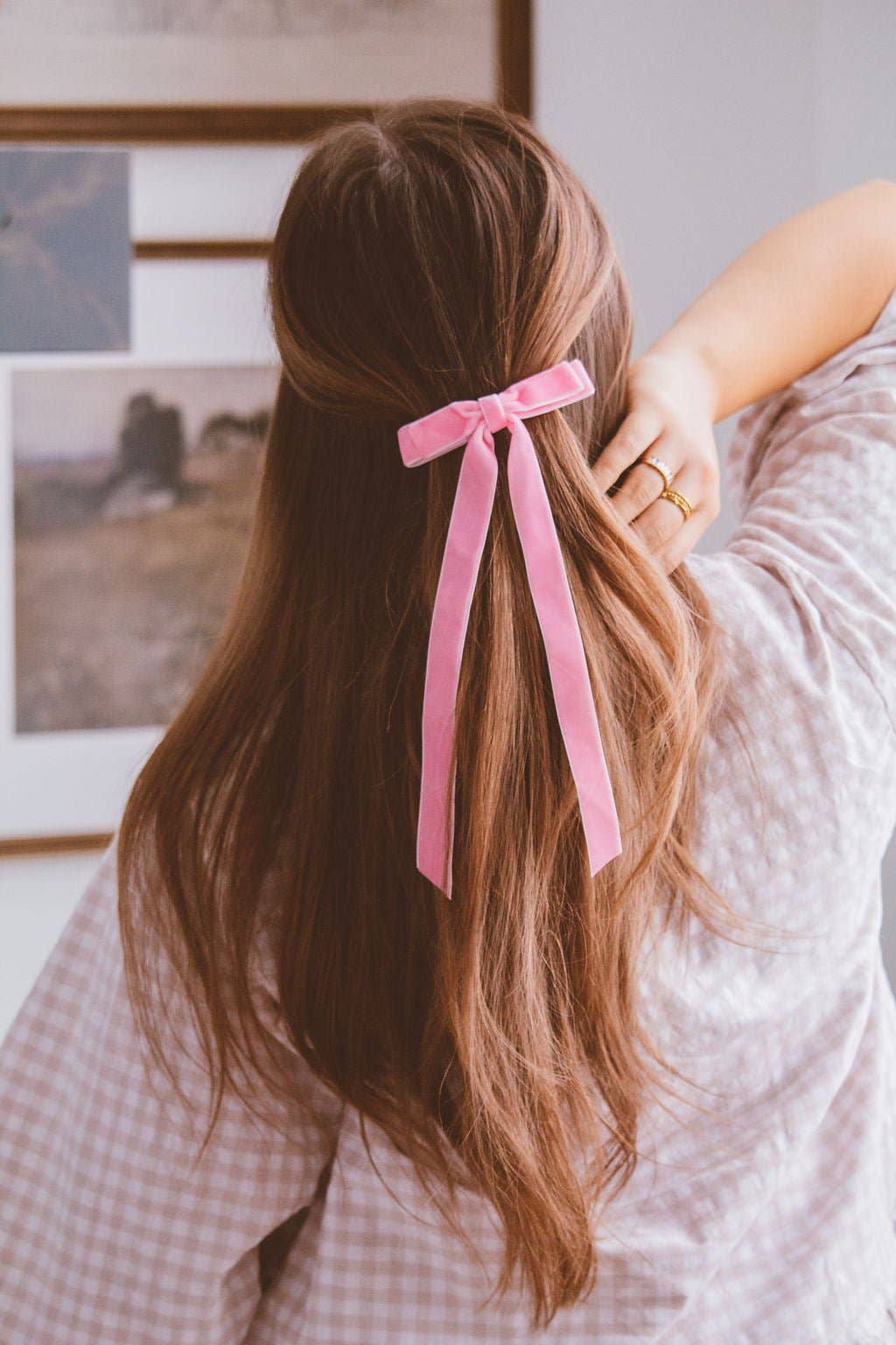 Shop ANDi - Velvet Double Bow Barrette: Pink