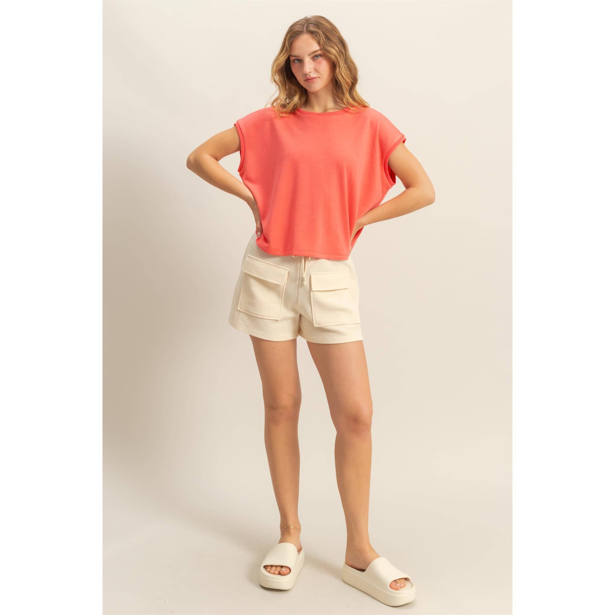 Crinkle Washed Cotton Drop Shoulder Oversized Top