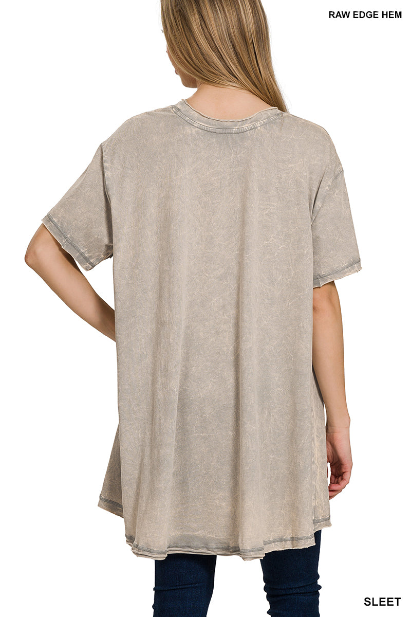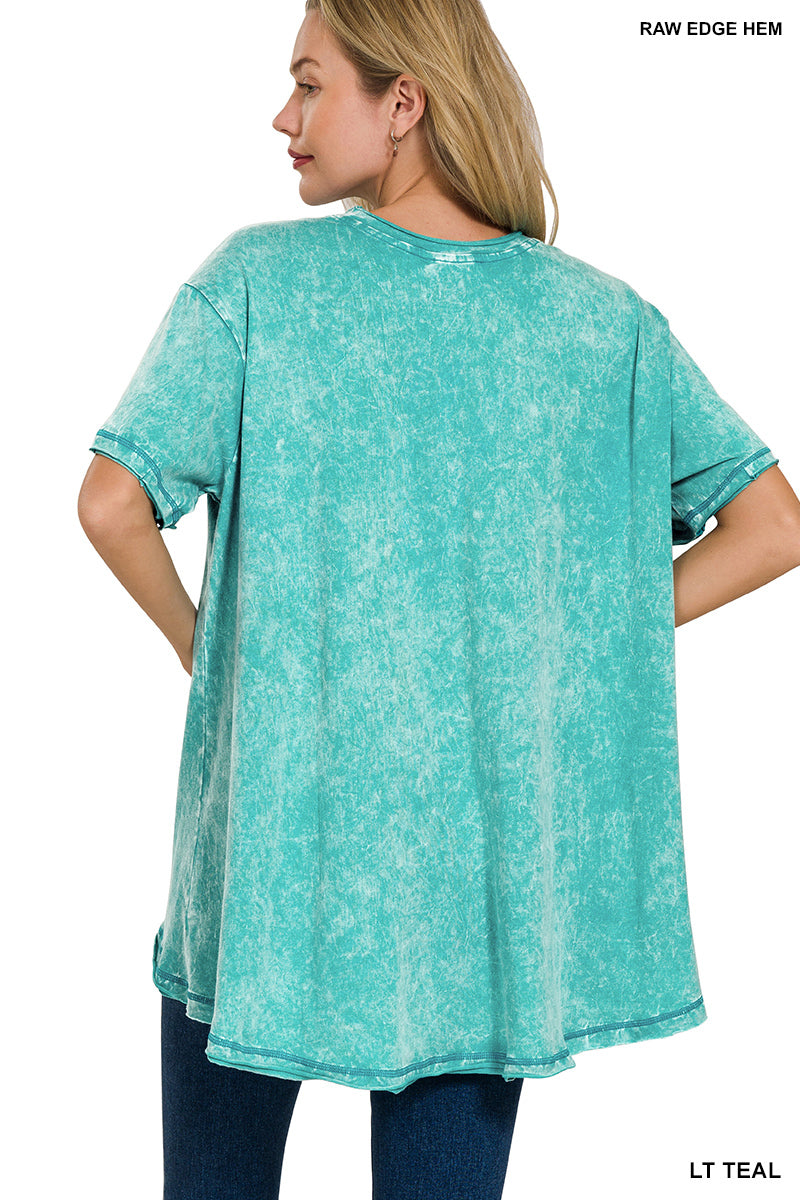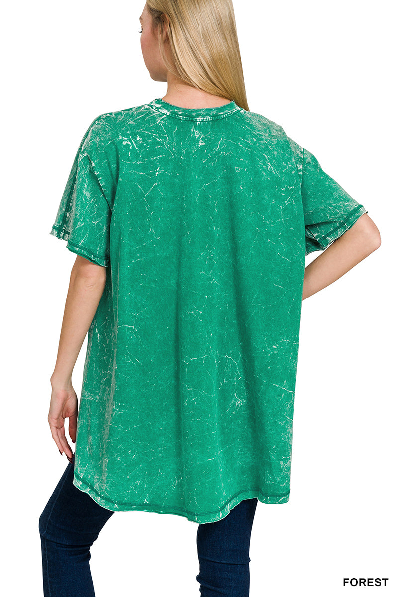 Zenana Plus Acid Washed French Terry Pullover with Pockets