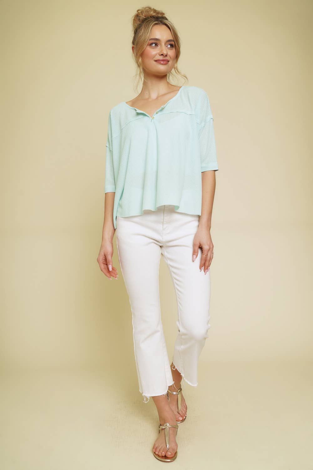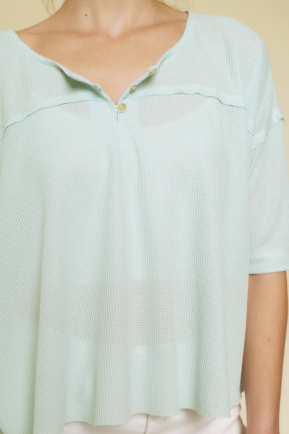 Meet your new everyday essential—the Easy Does It Oversized Henley Top by Mystree. Designed with a relaxed, flowy silhouette and soft textured knit fabric, this oversized Henley top is the definition of effortless style and comfort. Featuring a flattering split neckline with button detail, drop shoulders, and an airy fit, this top drapes beautifully on all body types while giving you that laid-back, lived-in look we love.