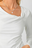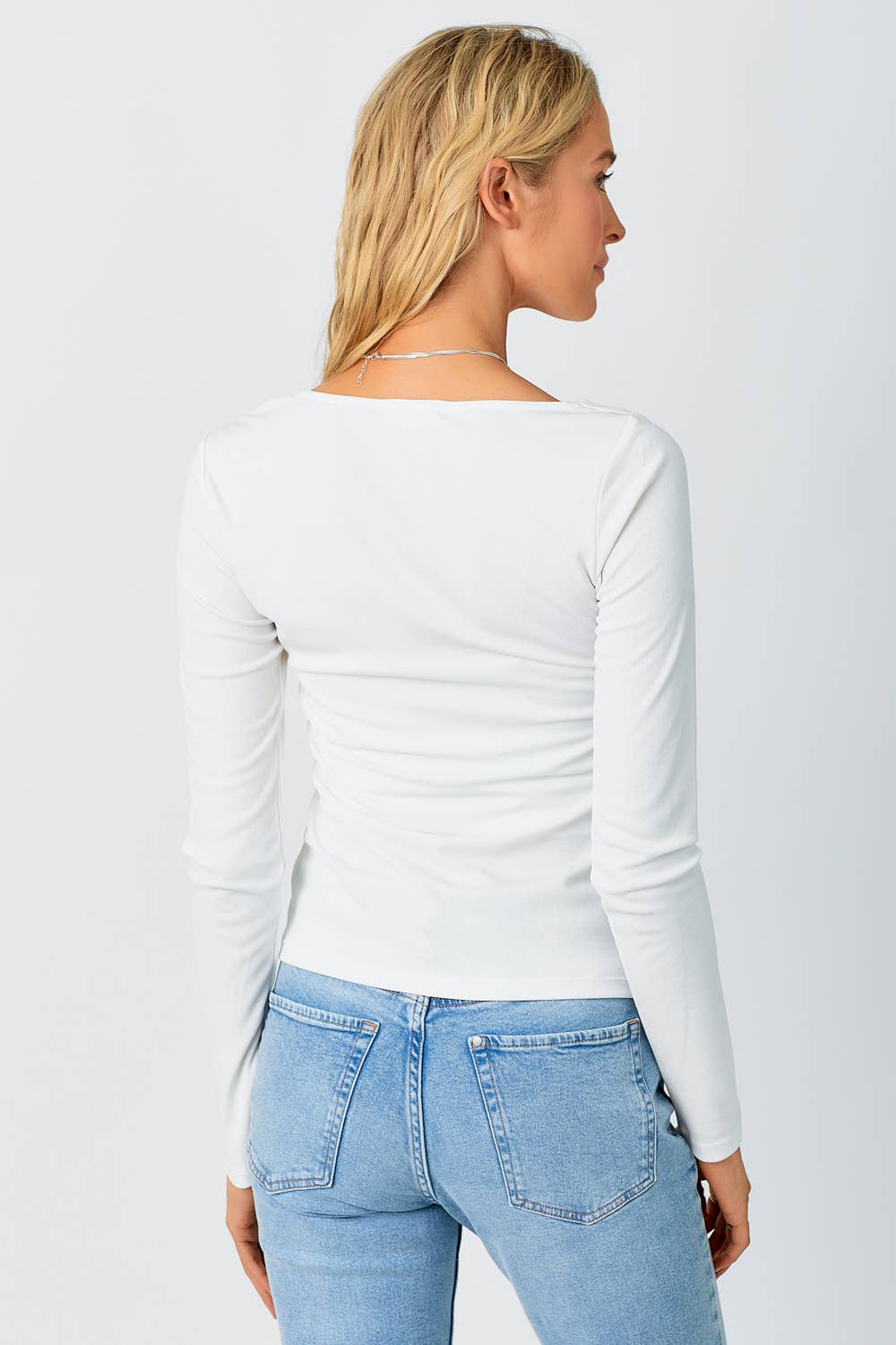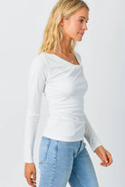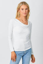 Designed with a knotted neckline detail, this elevated basic instantly upgrades your everyday wardrobe—perfect for styling solo or layering under jackets, cardigans, and blazers. The long sleeves and lightweight construction make it ideal for transitional seasons, offering both breathability and warmth.