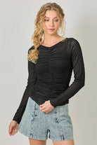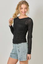 The black mesh fabrication makes this top endlessly versatile—layer it under blazers, leather jackets, sweaters, or wear it styled solo with high-rise denim for an effortlessly chic vibe. Perfect for day-to-night styling, date nights, concerts, or transitional layering through every season.