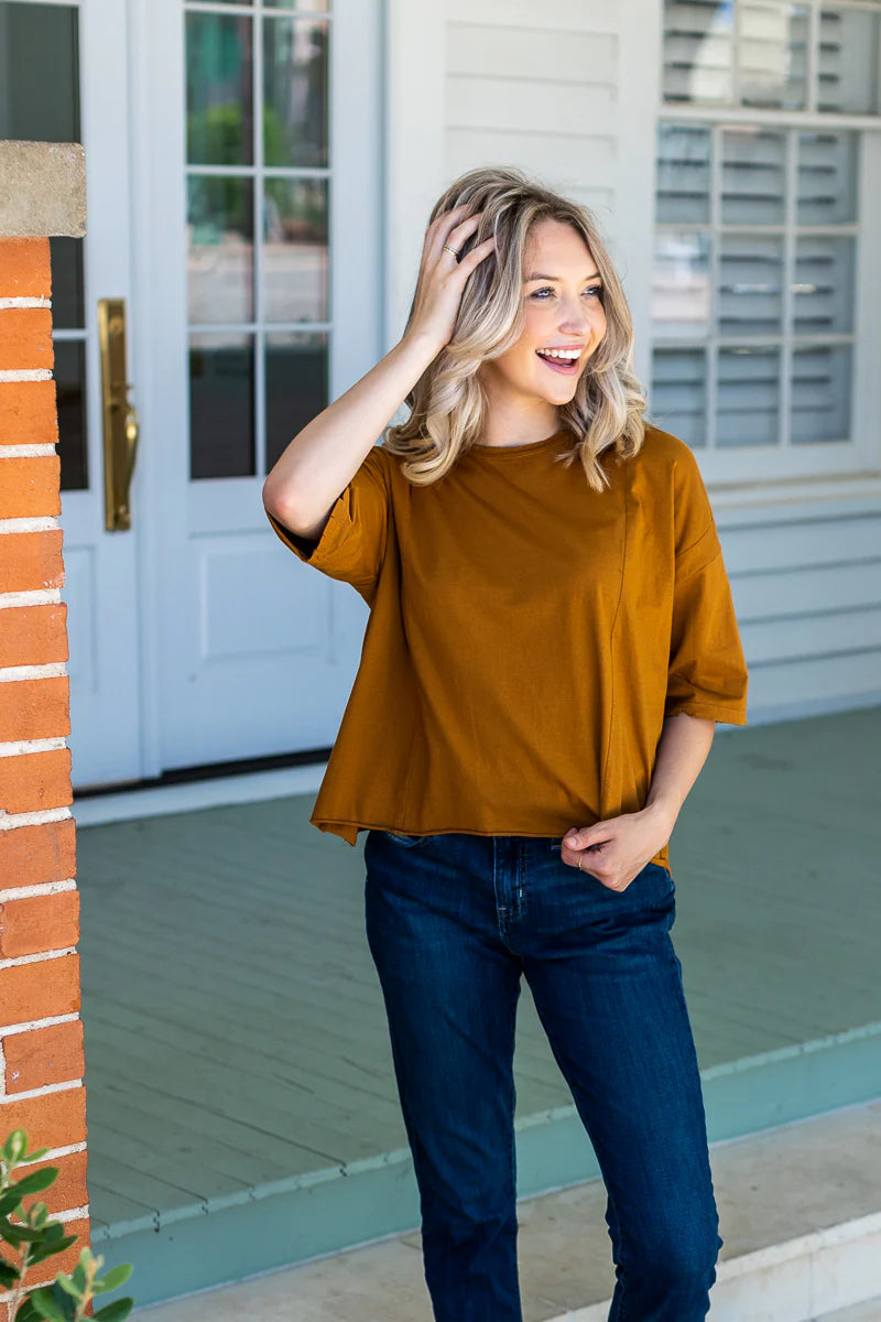 Perfect Company Boxy Crop in Tan