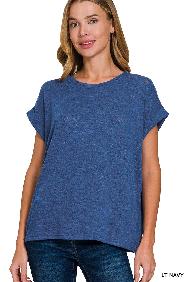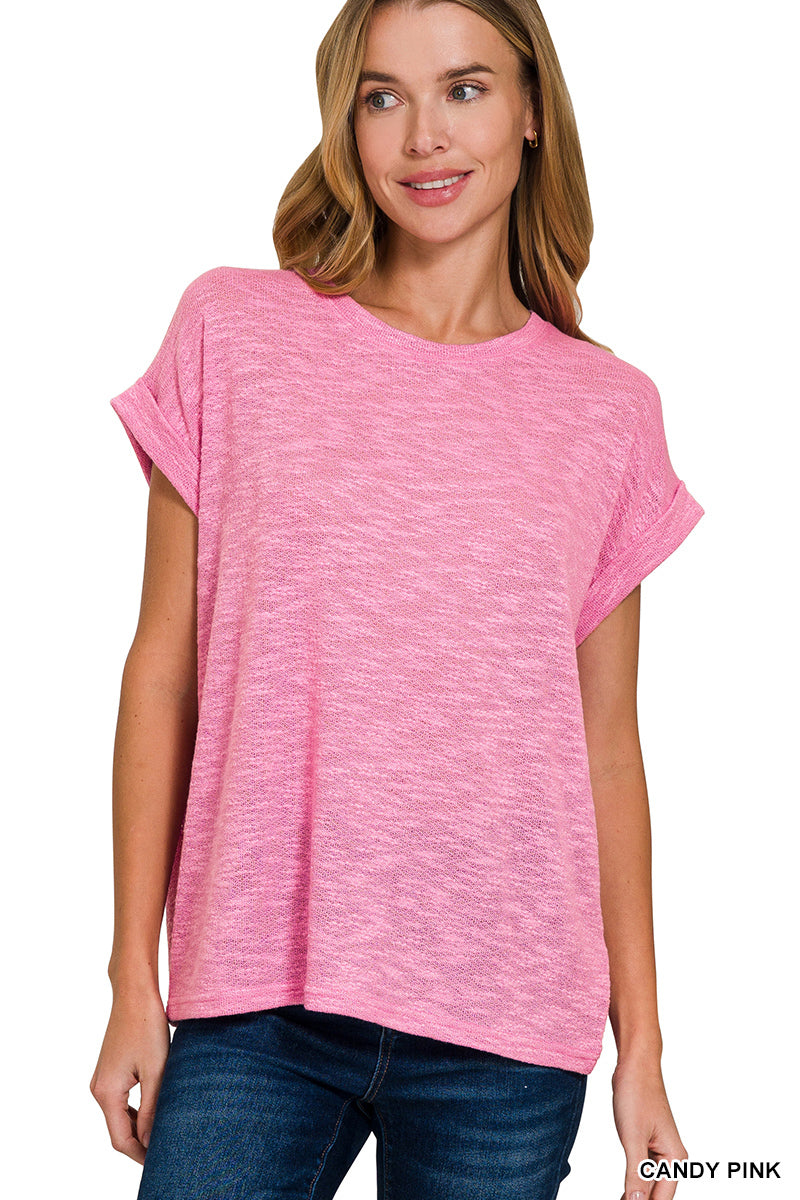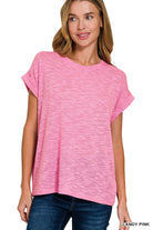 The Zenana Hacci Slub Rolled Up Sleeve Tee