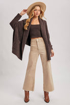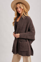 Wrap yourself in effortless elegance with the Midnight Mocha Luxe Wrap Bouclé Cardigan by Bluivy, a statement layering piece designed for ultimate comfort and elevated style. Crafted from an irresistibly soft, plush bouclé knit in a rich espresso brown, this open-front blanket wrap cardigan delivers cozy warmth with a chic, fashion-forward silhouette.