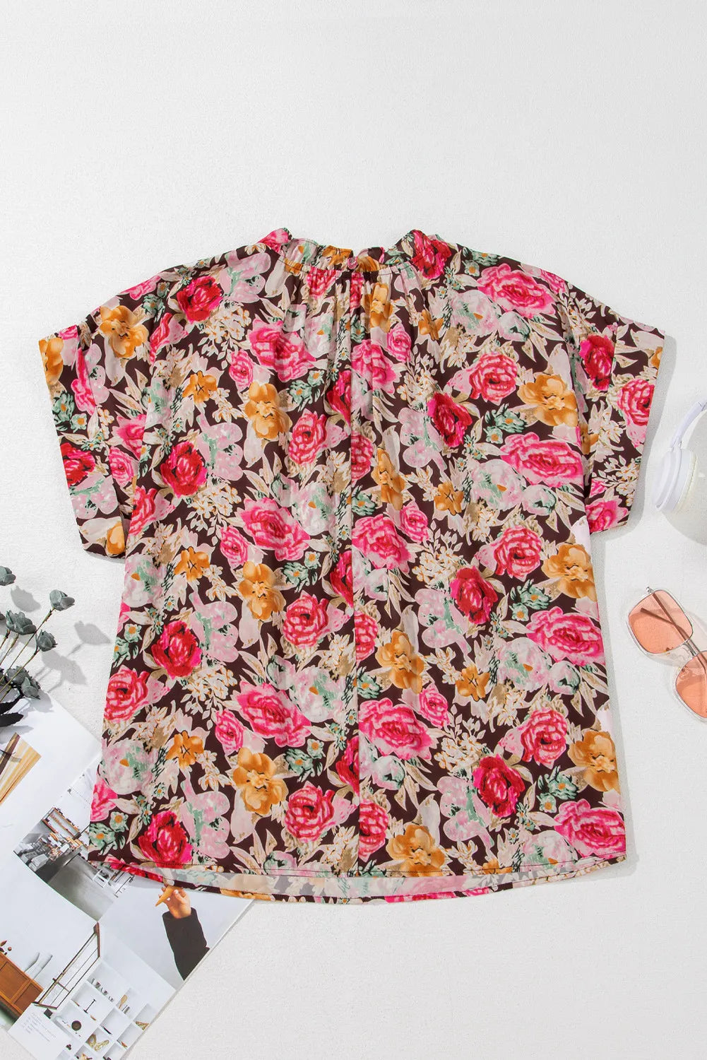 Bring a pop of color and charm to your wardrobe with the Rosé Garden Crewneck Blouse. Crafted from 100% polyester, this floral-print beauty offers both comfort and style. The short sleeves and relaxed shift silhouette create a flattering, easy-to-wear fit that’s perfect for everything from weekend brunch to office chic. Designed in vibrant pink hues with a timeless floral pattern, this blouse adds a feminine yet versatile touch to any outfit.