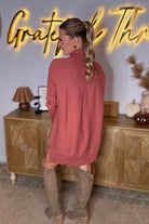 Mineral Red Turtleneck Ribbed Knit Tunic Sweater