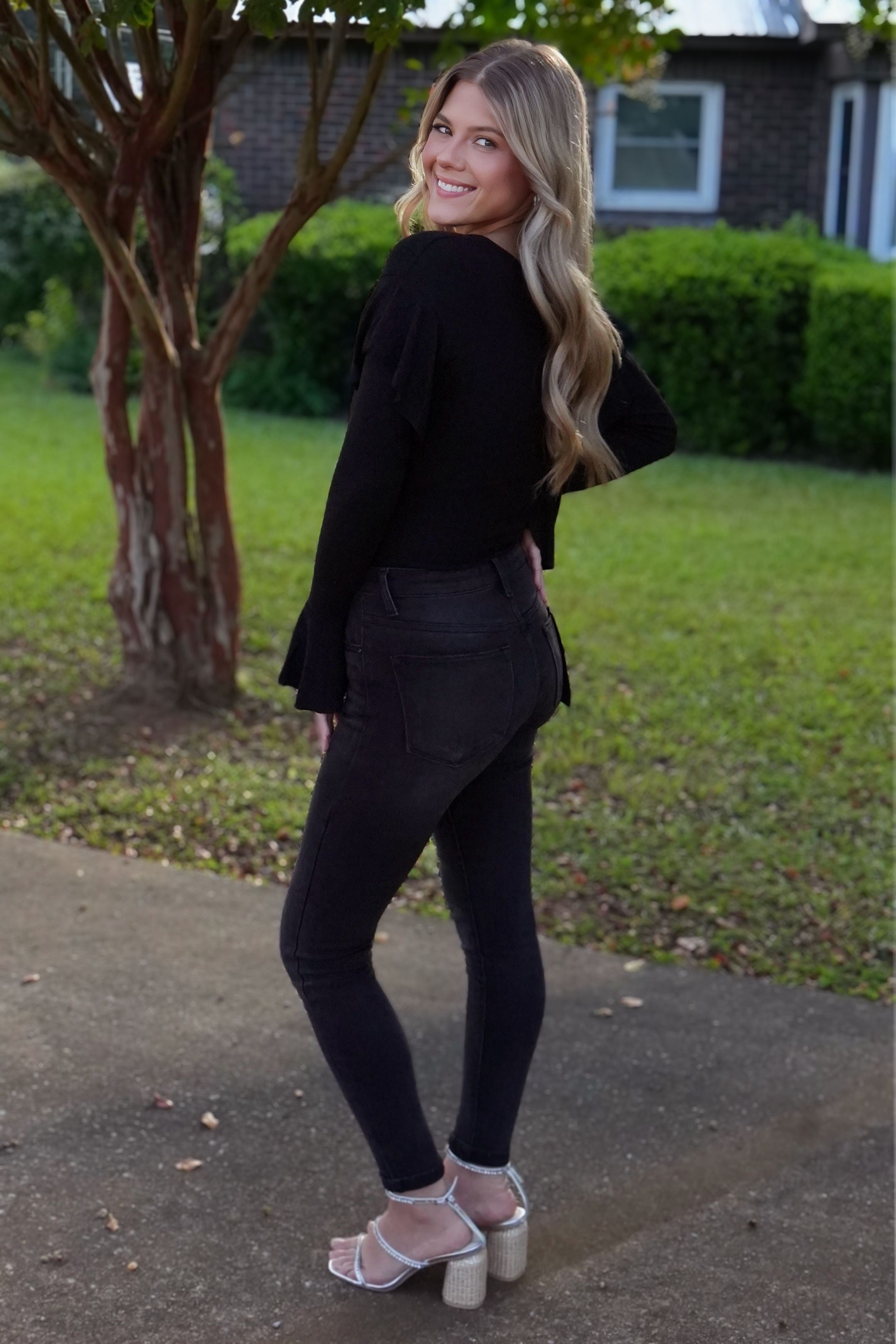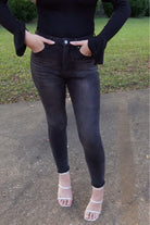 Risen Black Wash High Rise Ankle Skinny Jeans