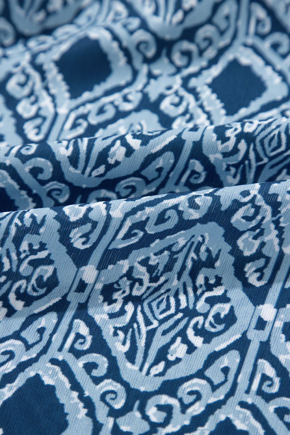 Blue western Geometric Print Frilled Loose Fit Blouse