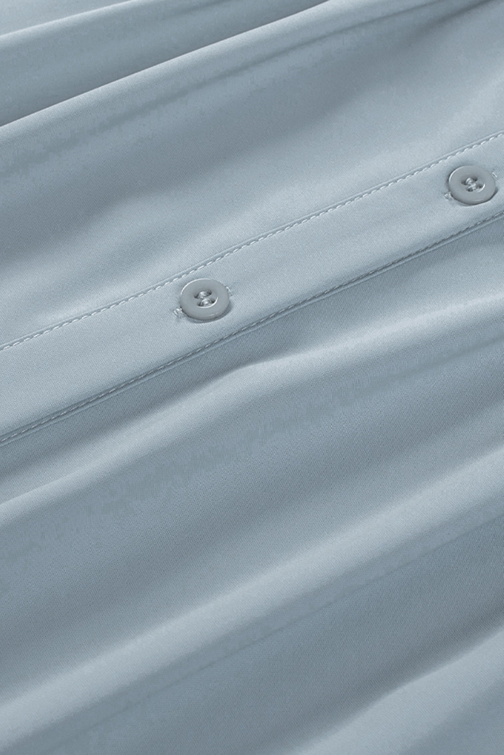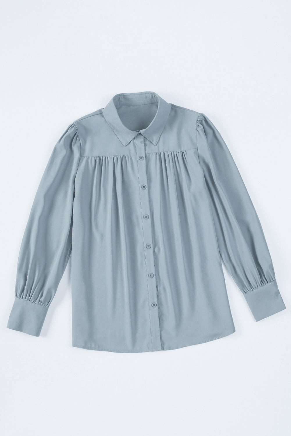Sky Blue Solid Color Button Up Puff Sleeve Blouse