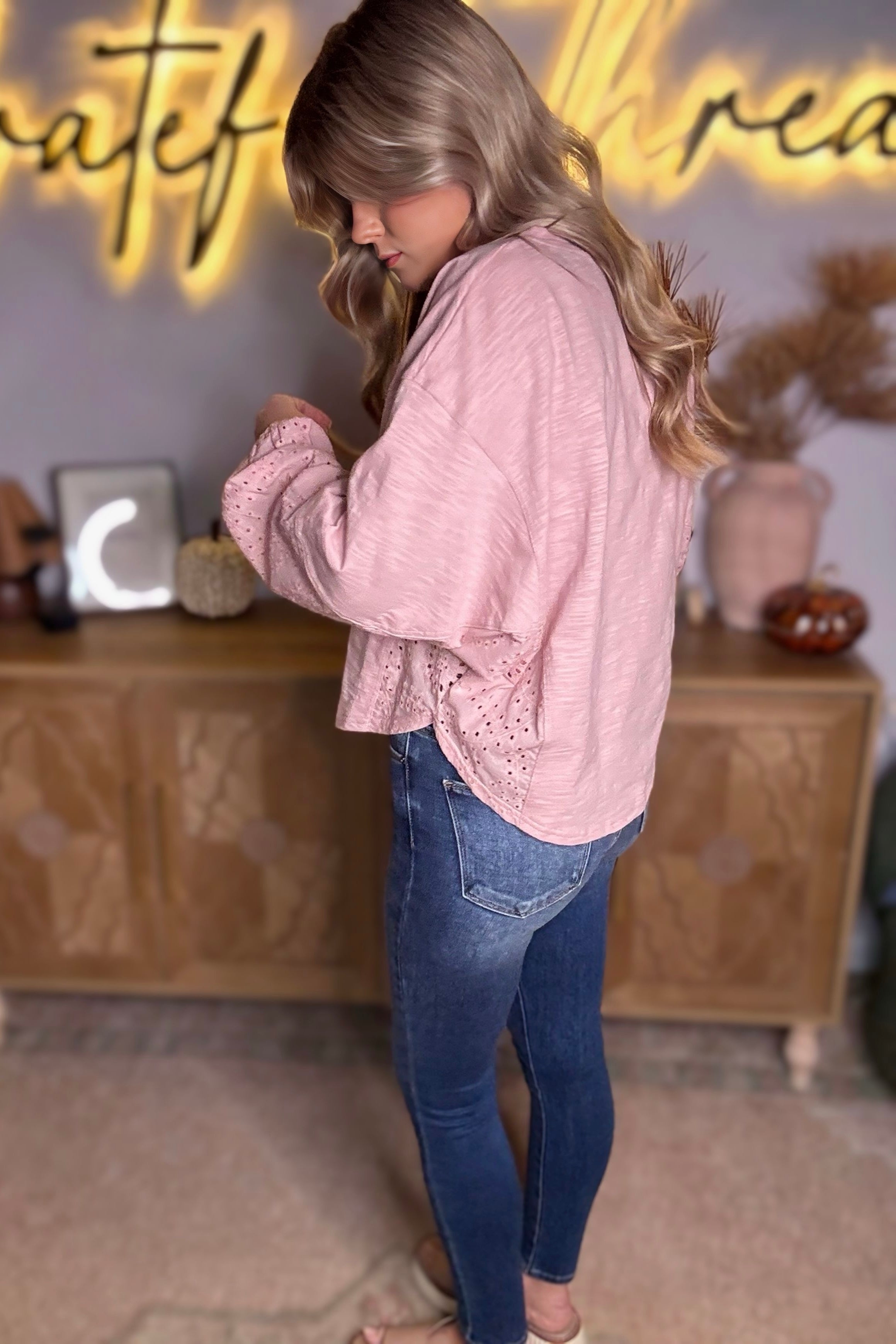 Add a touch of playful charm to your everyday wardrobe with this Light Pink Keyhole Notch V-Neck Batwing Sleeve Blouse by Grateful Threads. Designed for comfort and style, this relaxed-fit top is perfect for casual outings, weekend fun, or laid-back office vibes.
