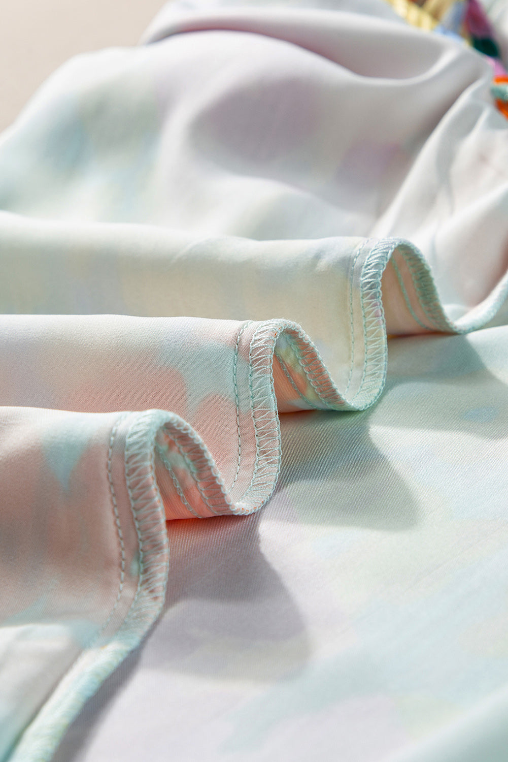 Multicolour Leopard Flutter Sleeve V Neck Crinkled Blouse