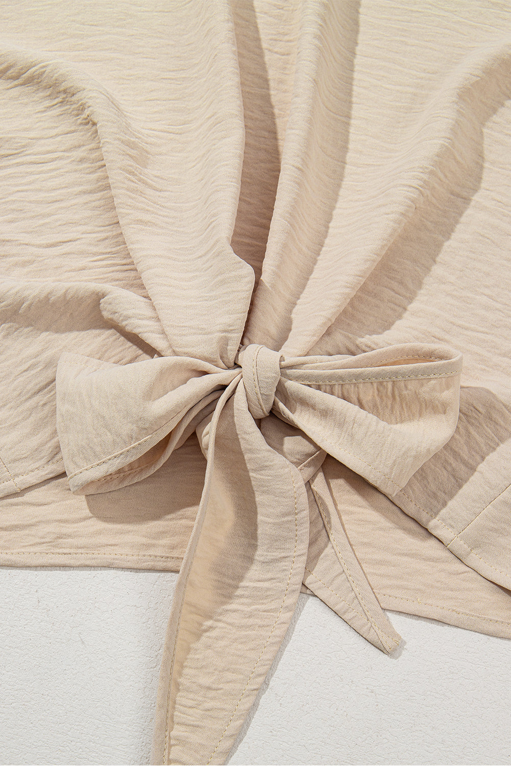 Parchment Knotted Hem Short Sleeve Blouse – Effortless Chic Style