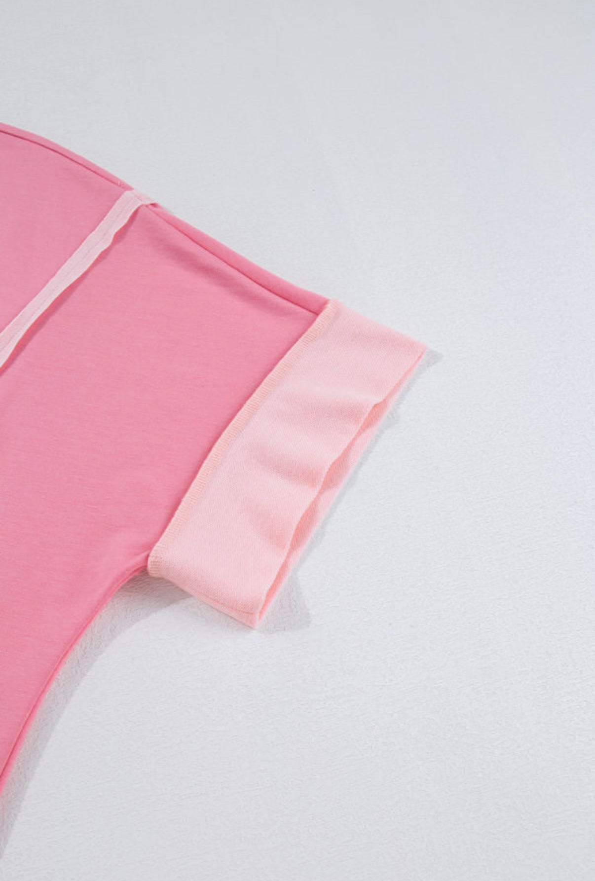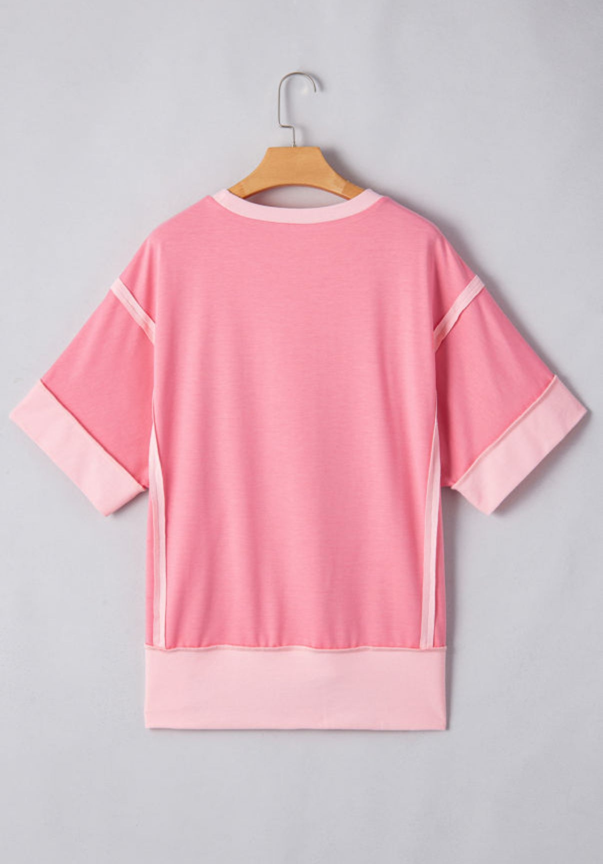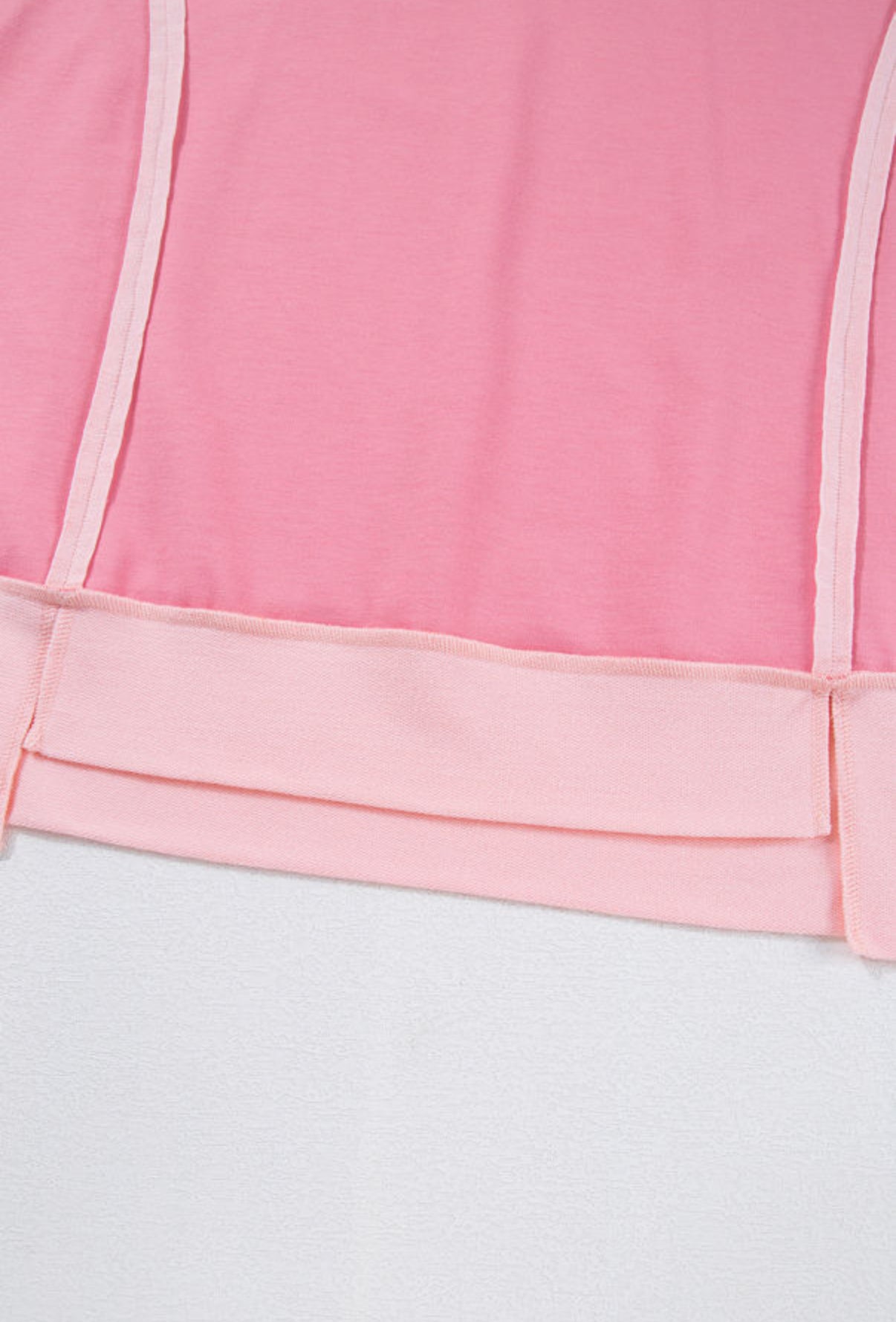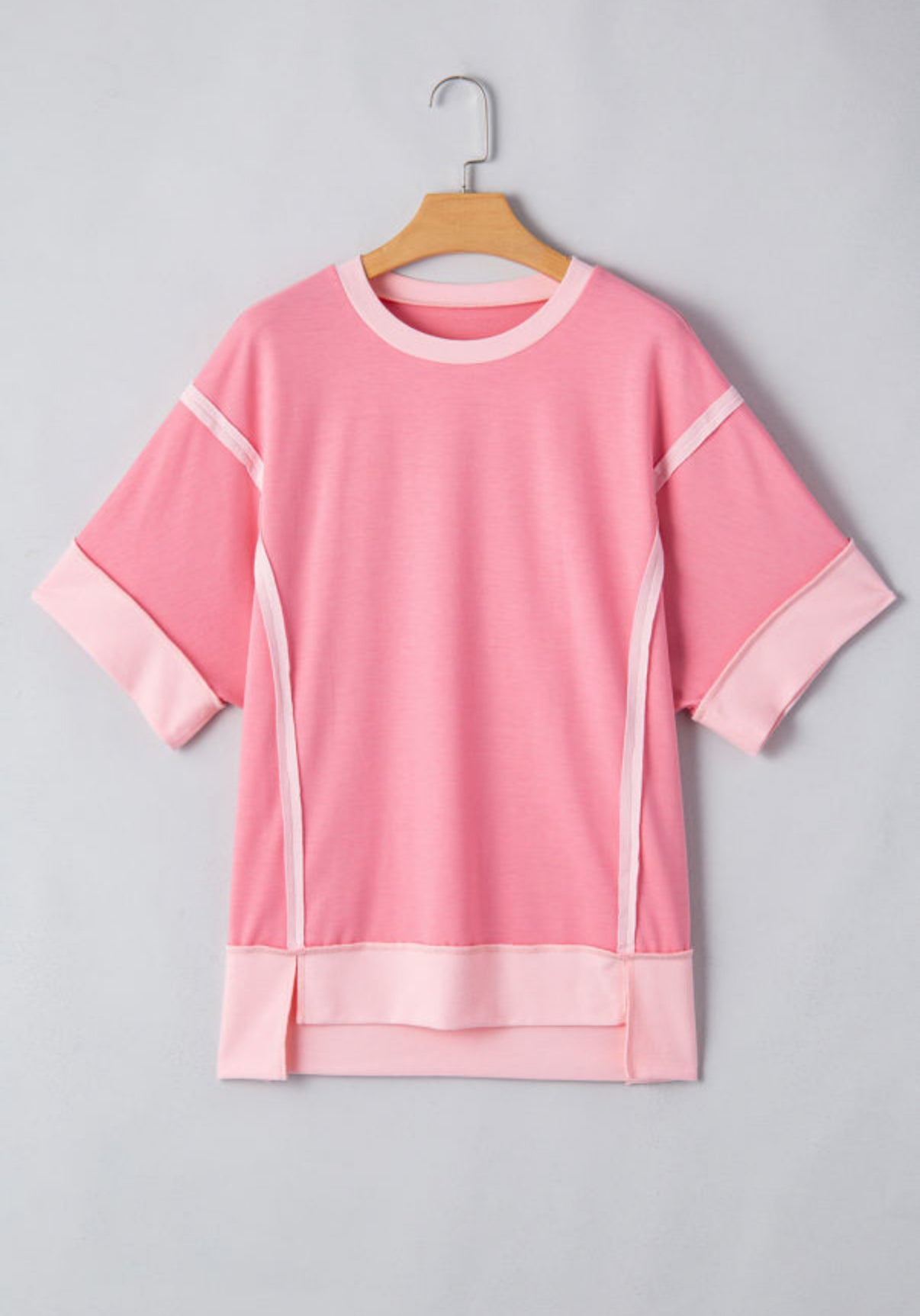 Peach Blossom Half Sleeve Raw Seam High Low Side Split Top