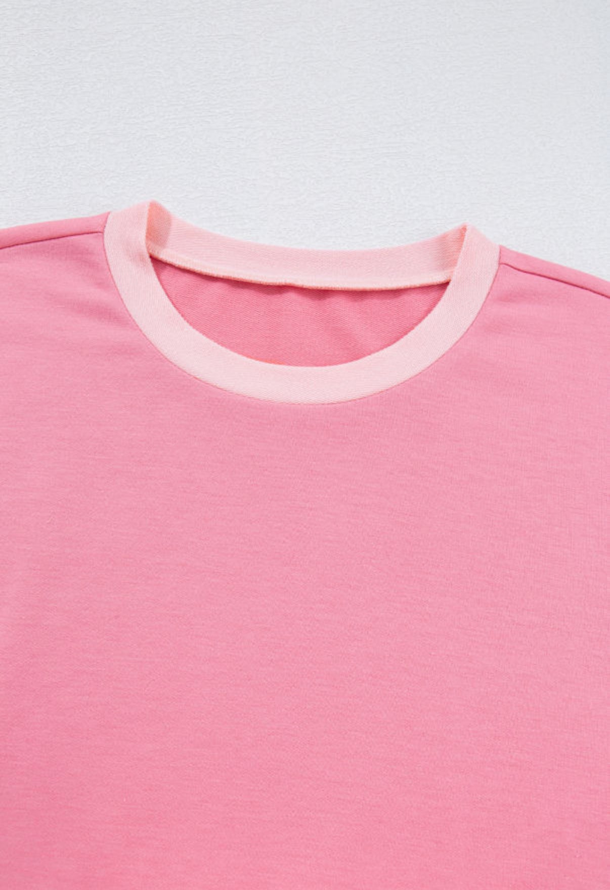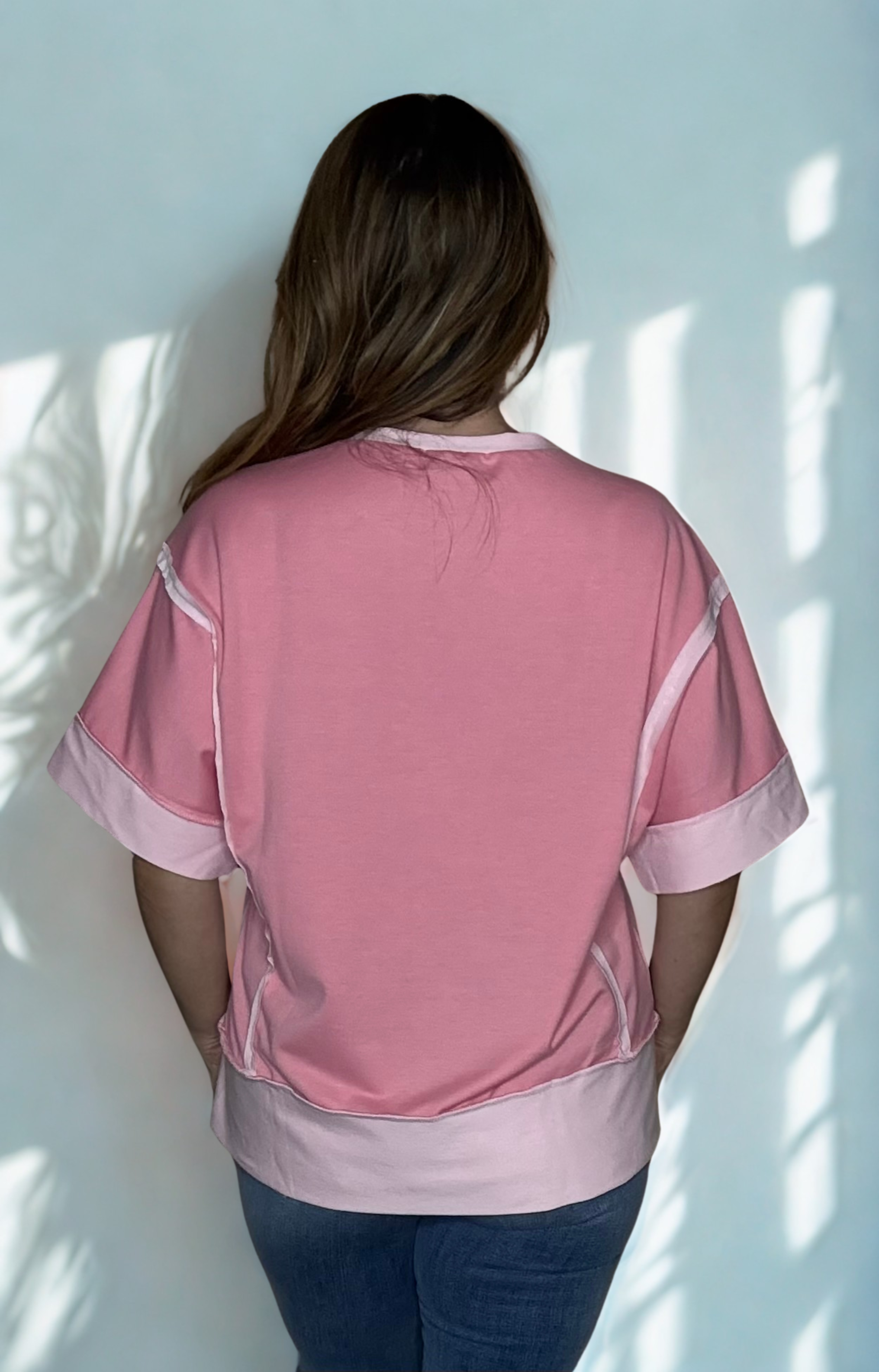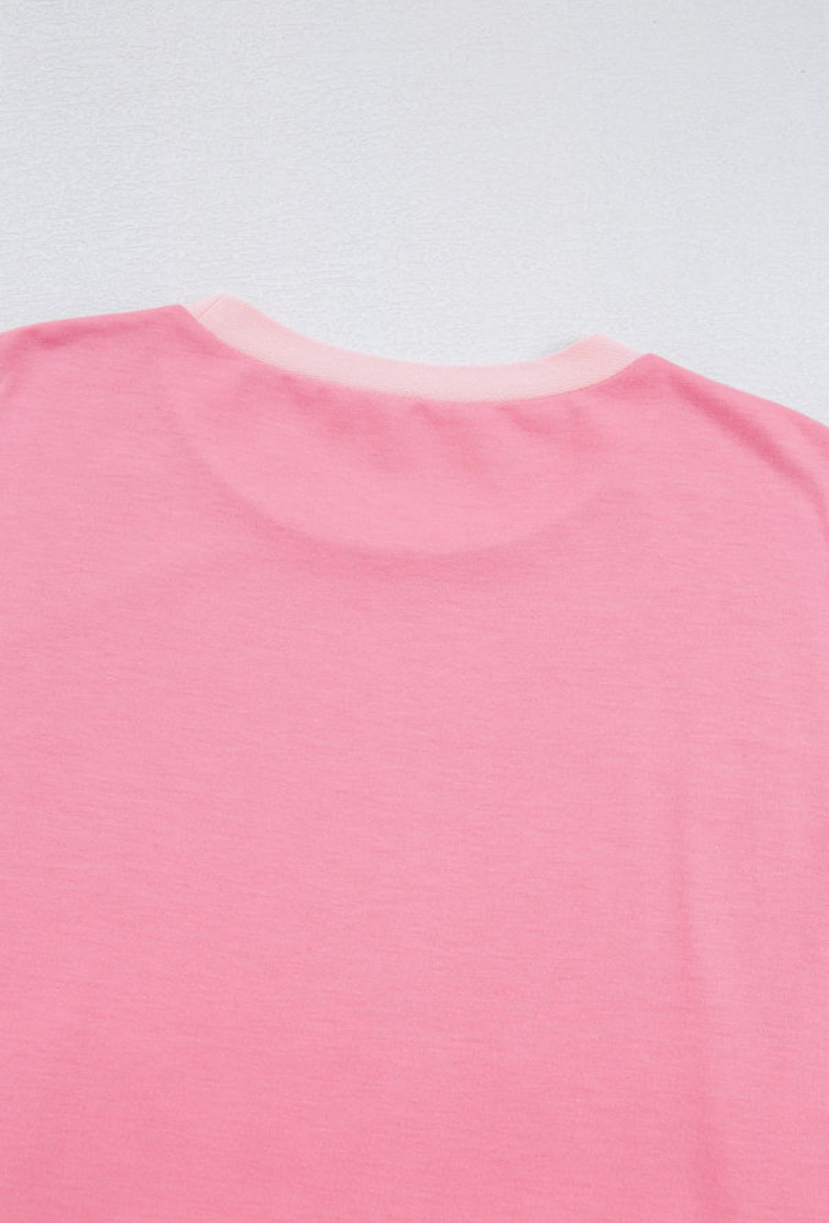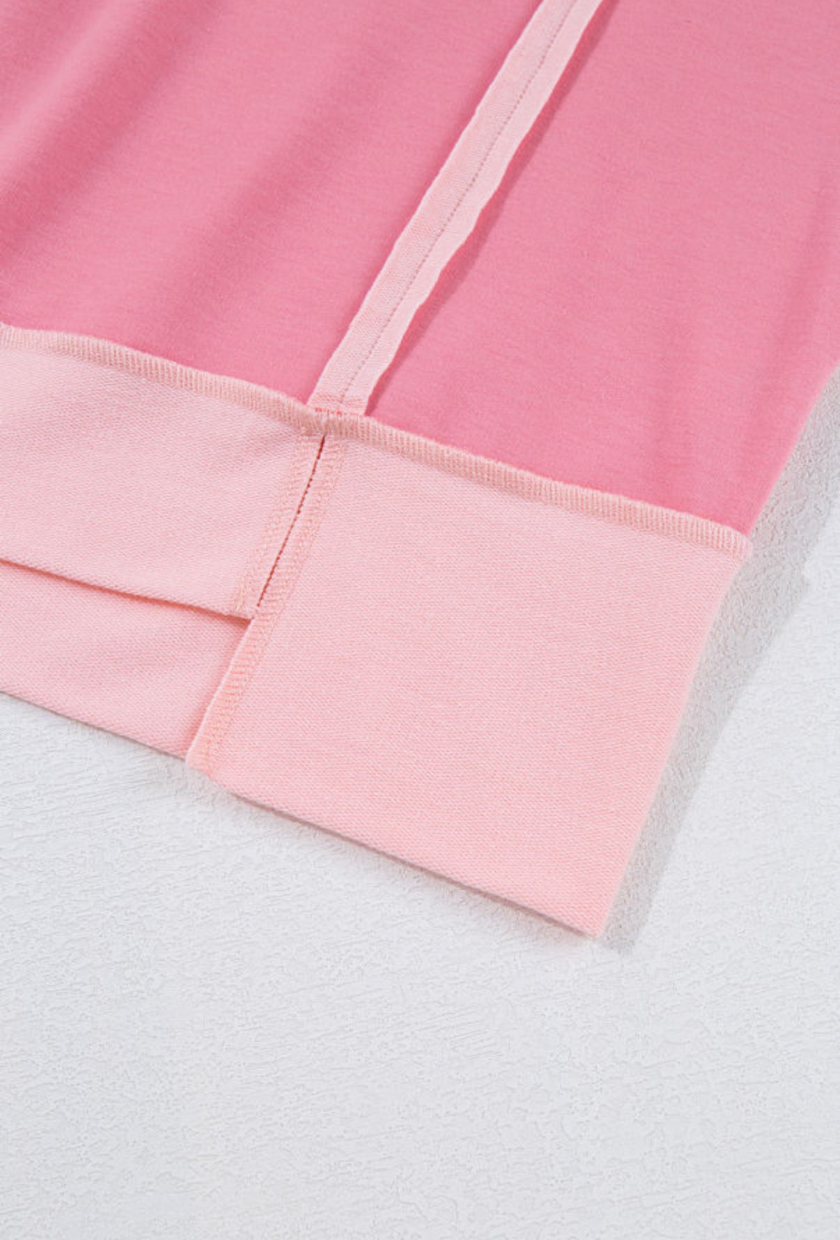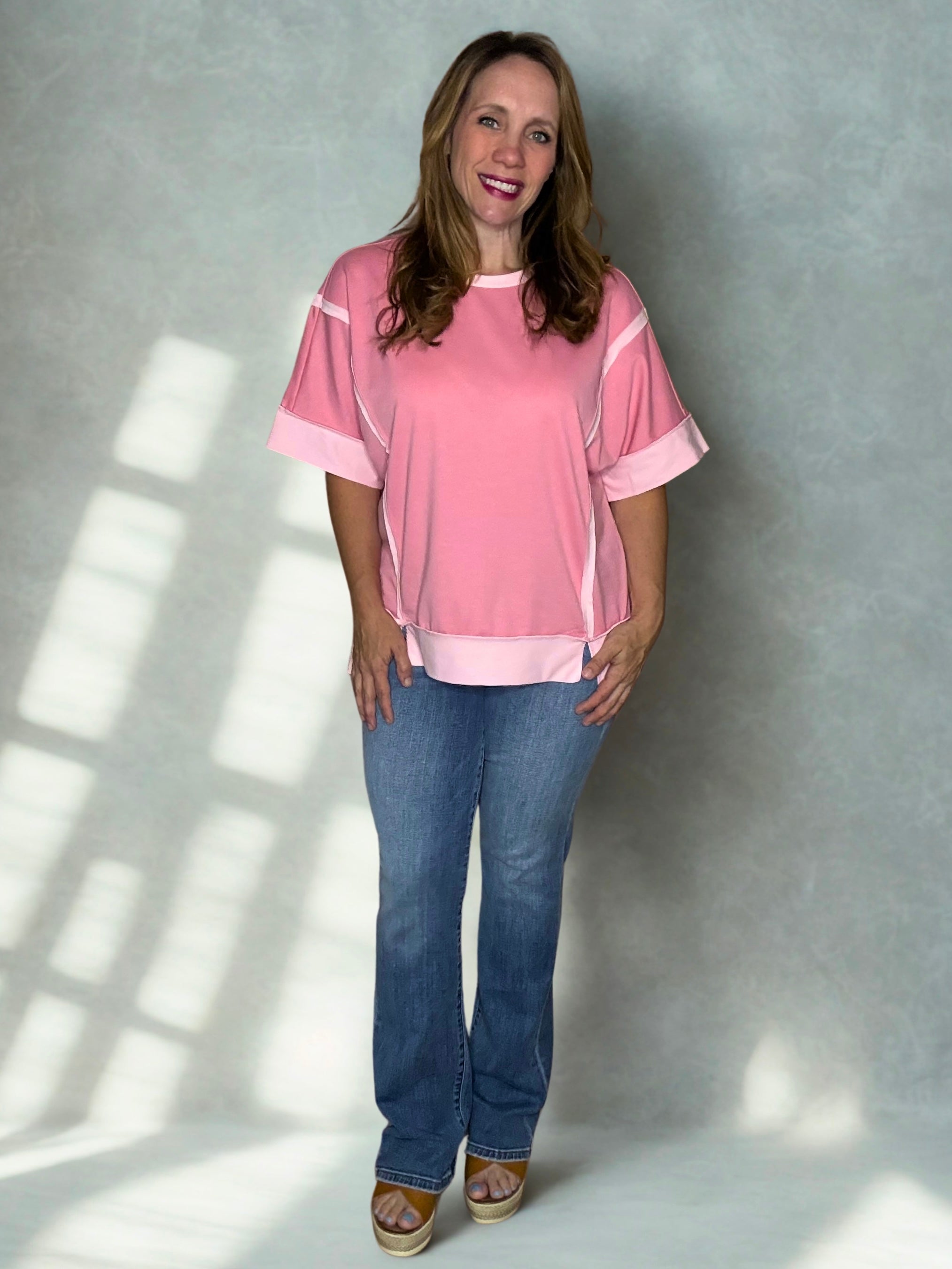 Peach Blossom Half Sleeve Raw Seam High Low Side Split Top