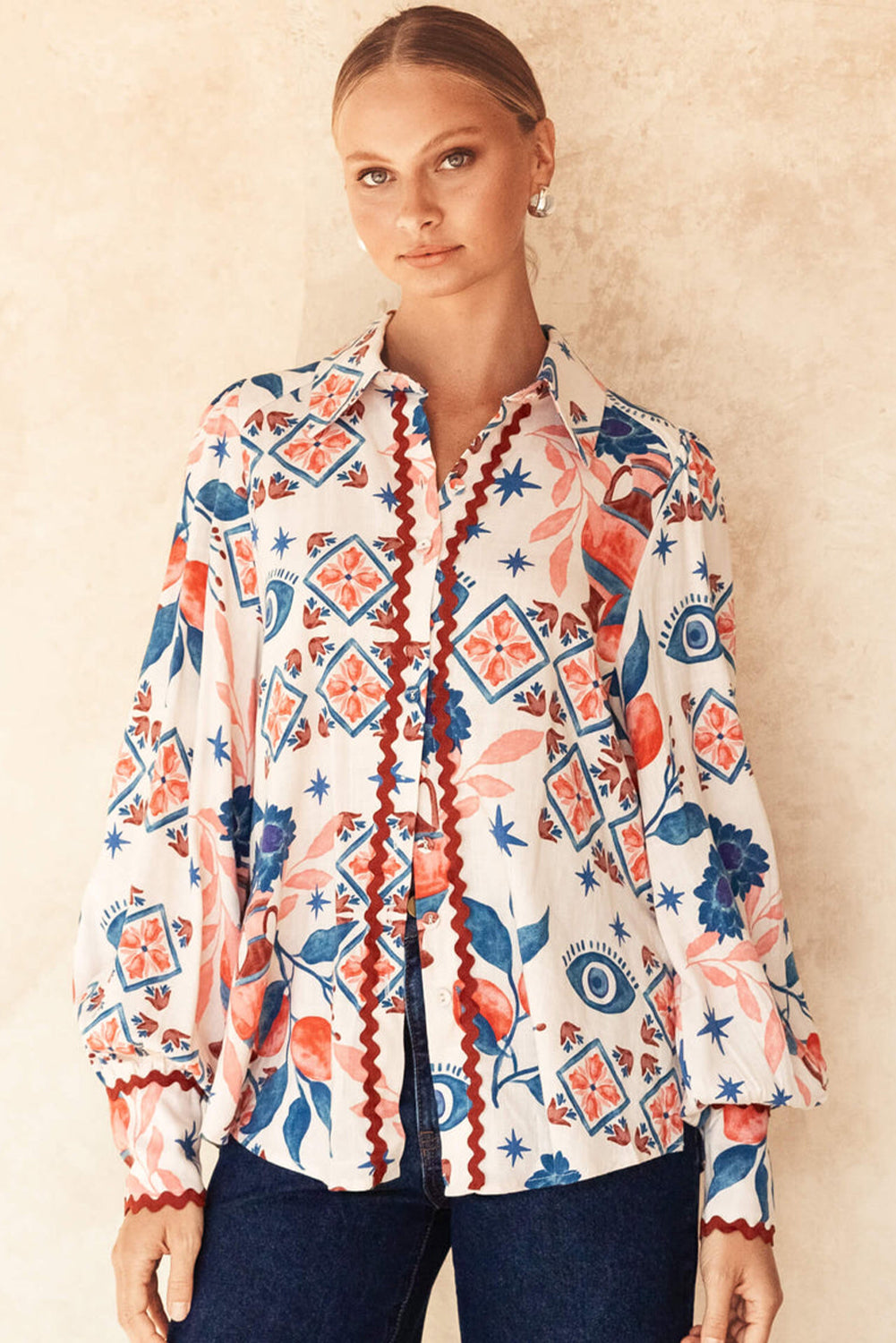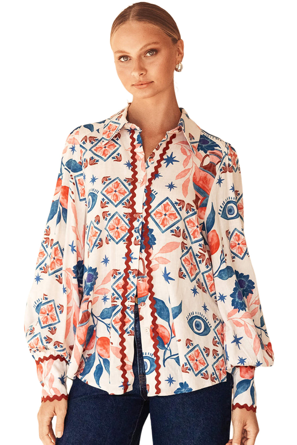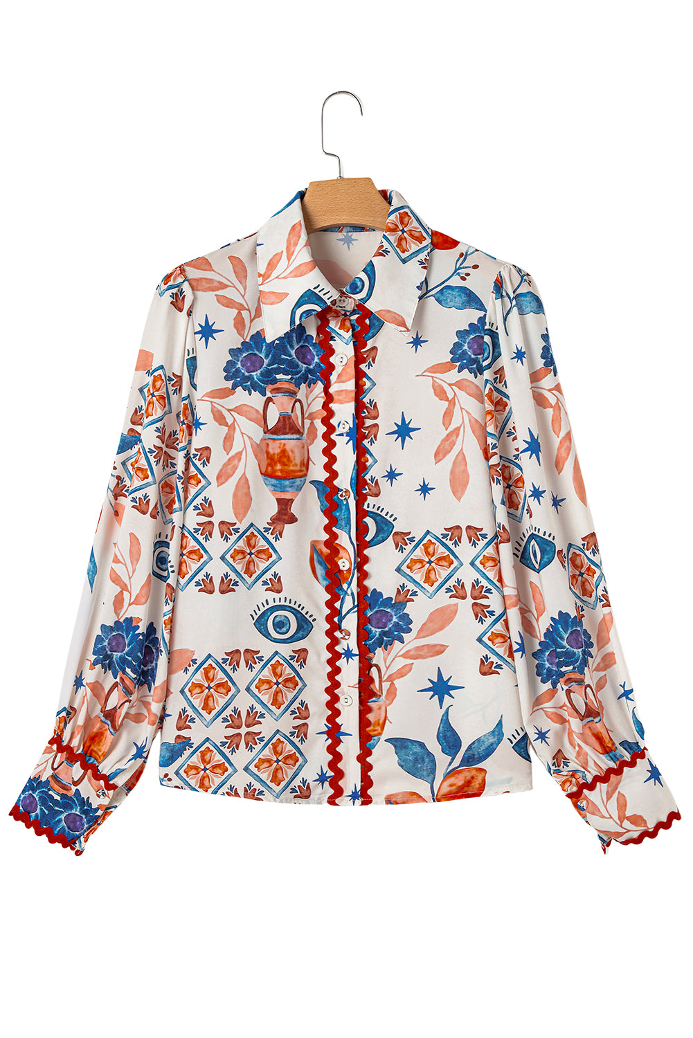 - The ric rac trim enhances the shirt with a playful and eye-catching twist.