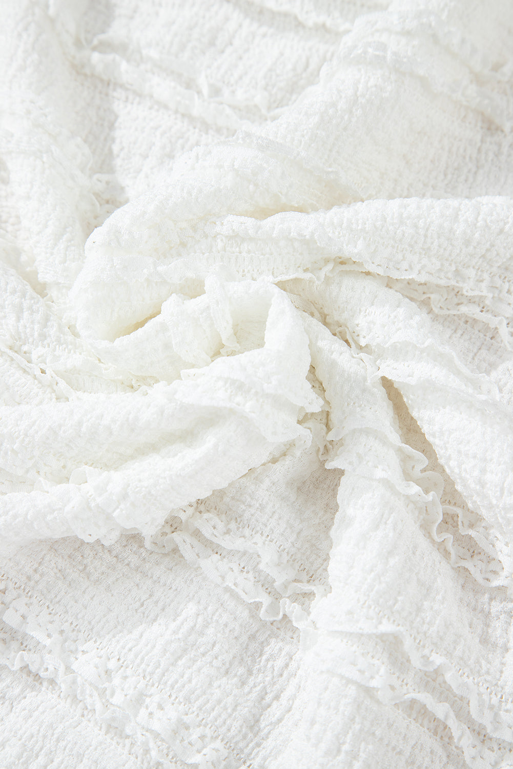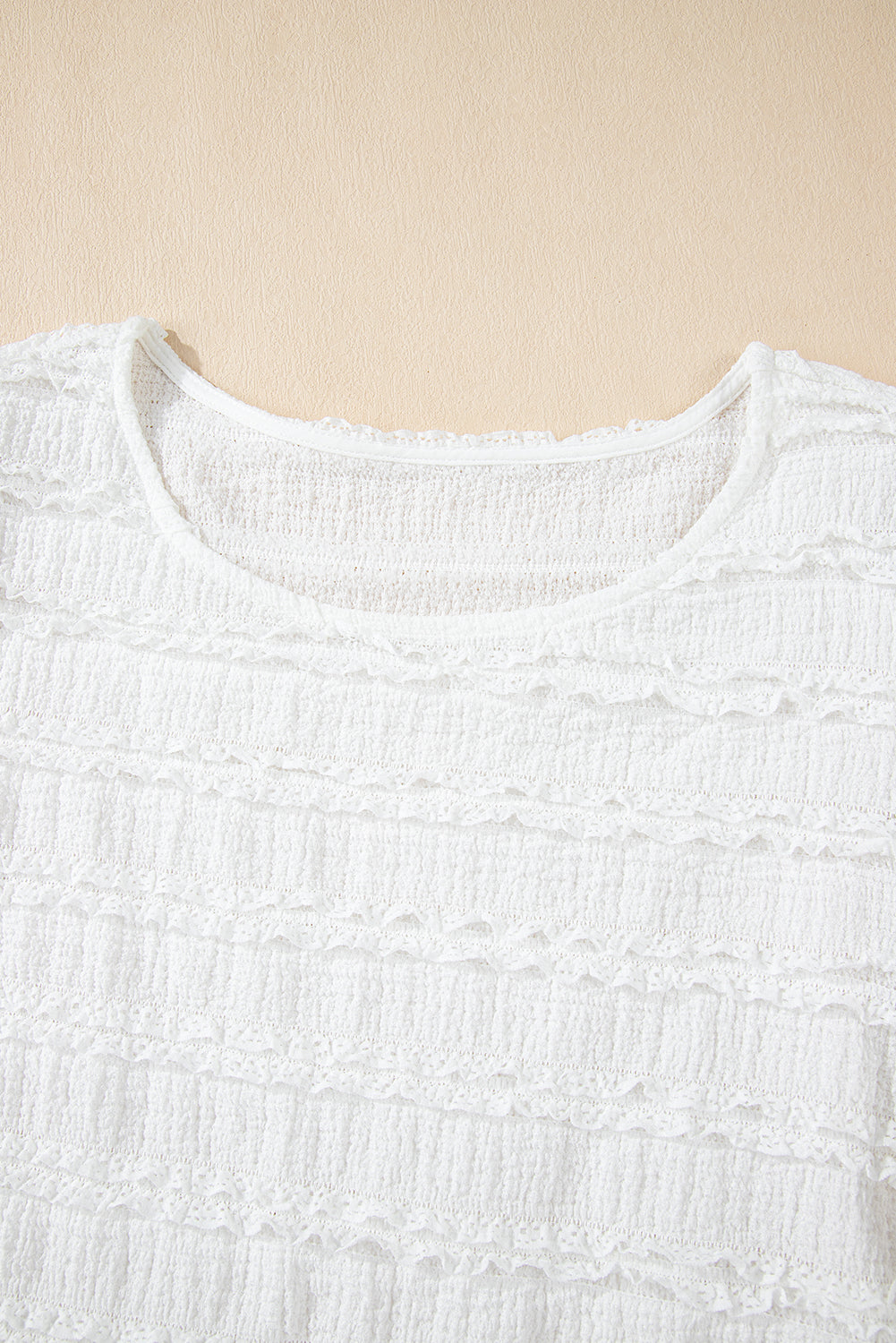 White Frilled Lace Trim Bubble Sleeve Blouse