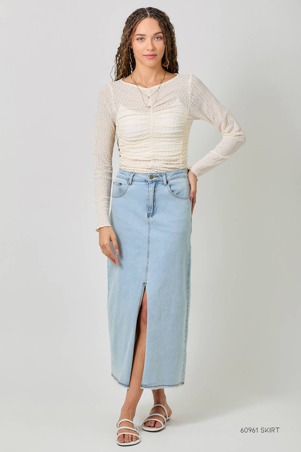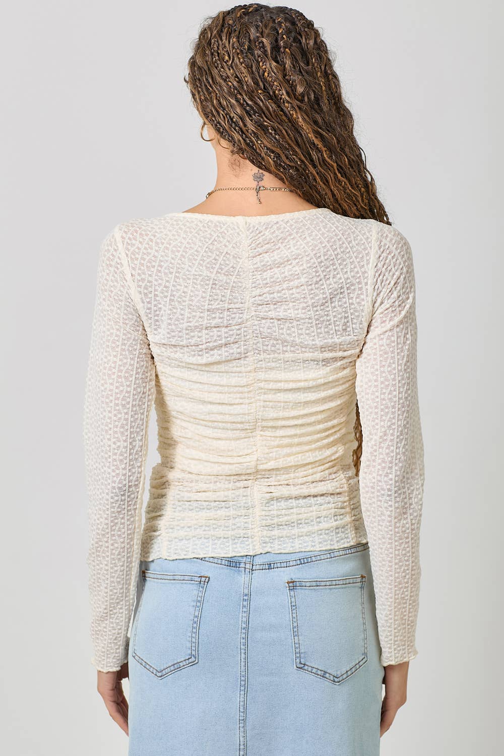 Mystree - Whispered Romance Lettuce Hem Mesh Layering Top