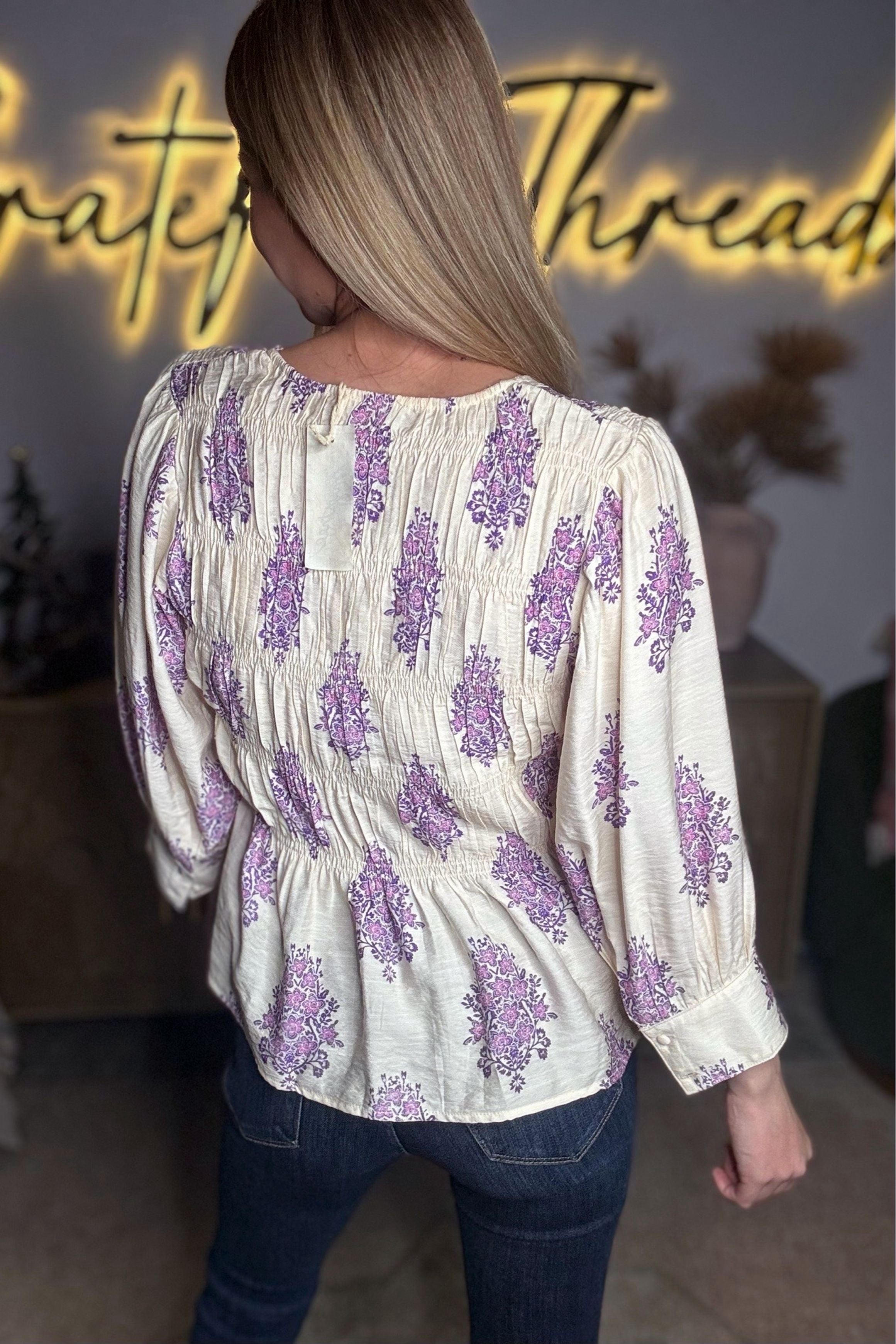 Mystree - Lavender Fields Puff Sleeve Smocked Blouse