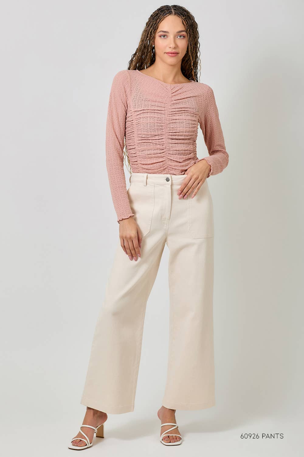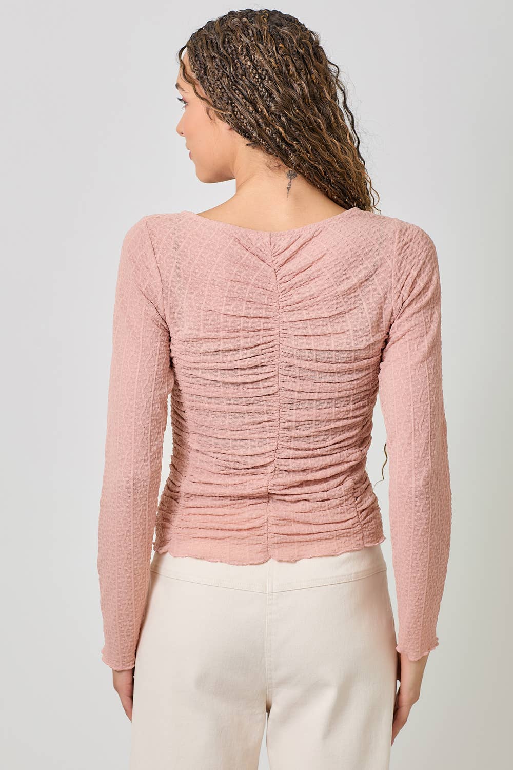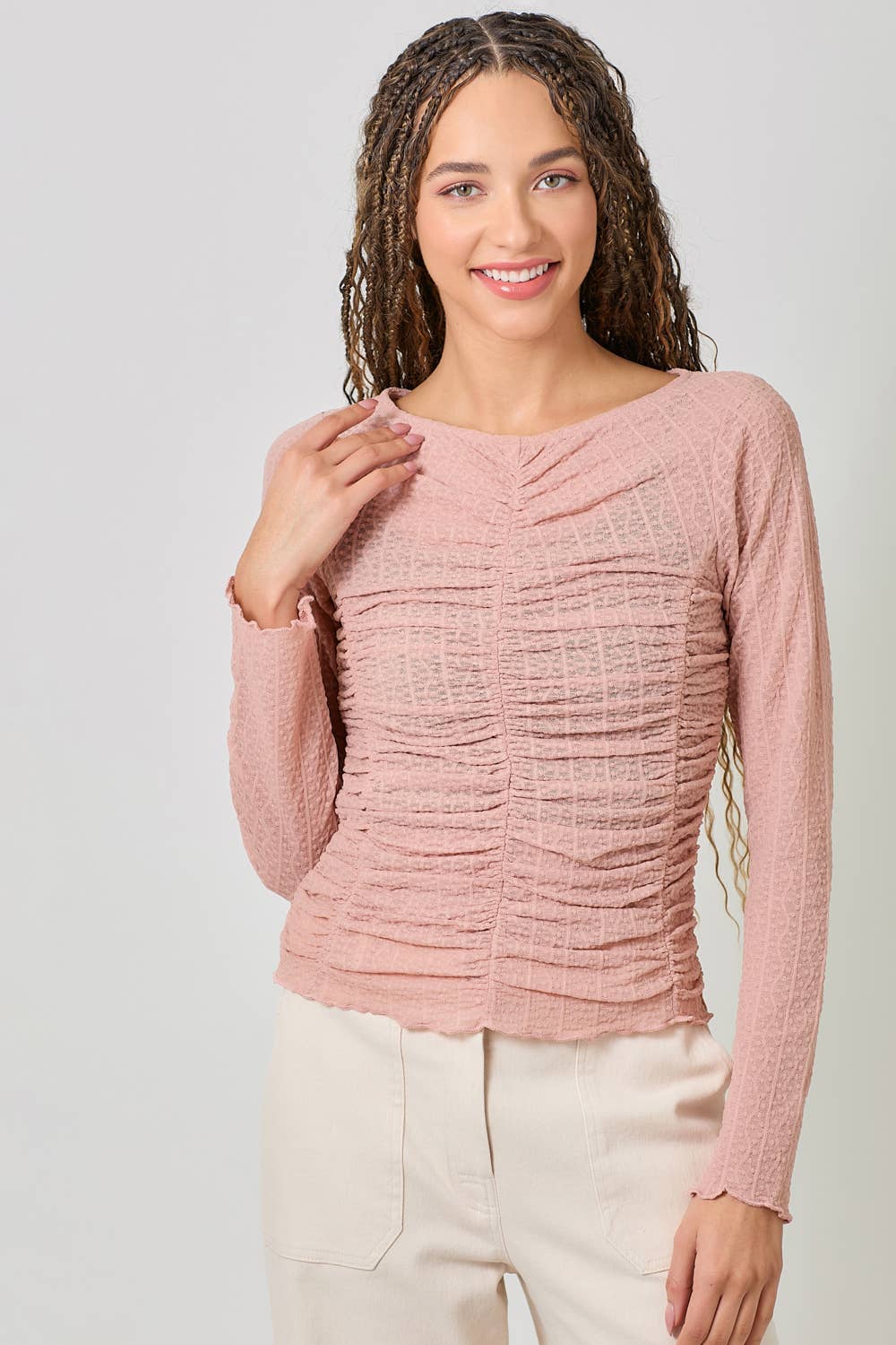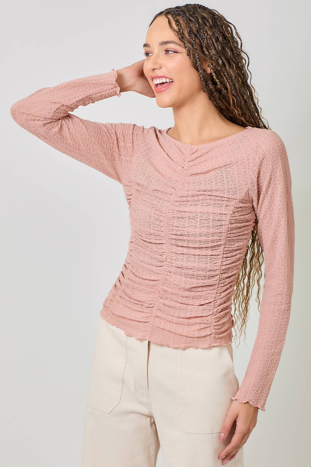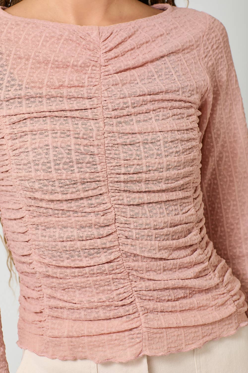 Soft, romantic, and made for effortless layering — the Blushing Petals Lettuce Hem Mesh Layering Top is the definition of feminine boho charm. Designed in a dreamy blush hue, this lightweight mesh top features delicate lettuce-edge hems and subtle ruching that flatter your figure while adding texture and dimension to any outfit.
