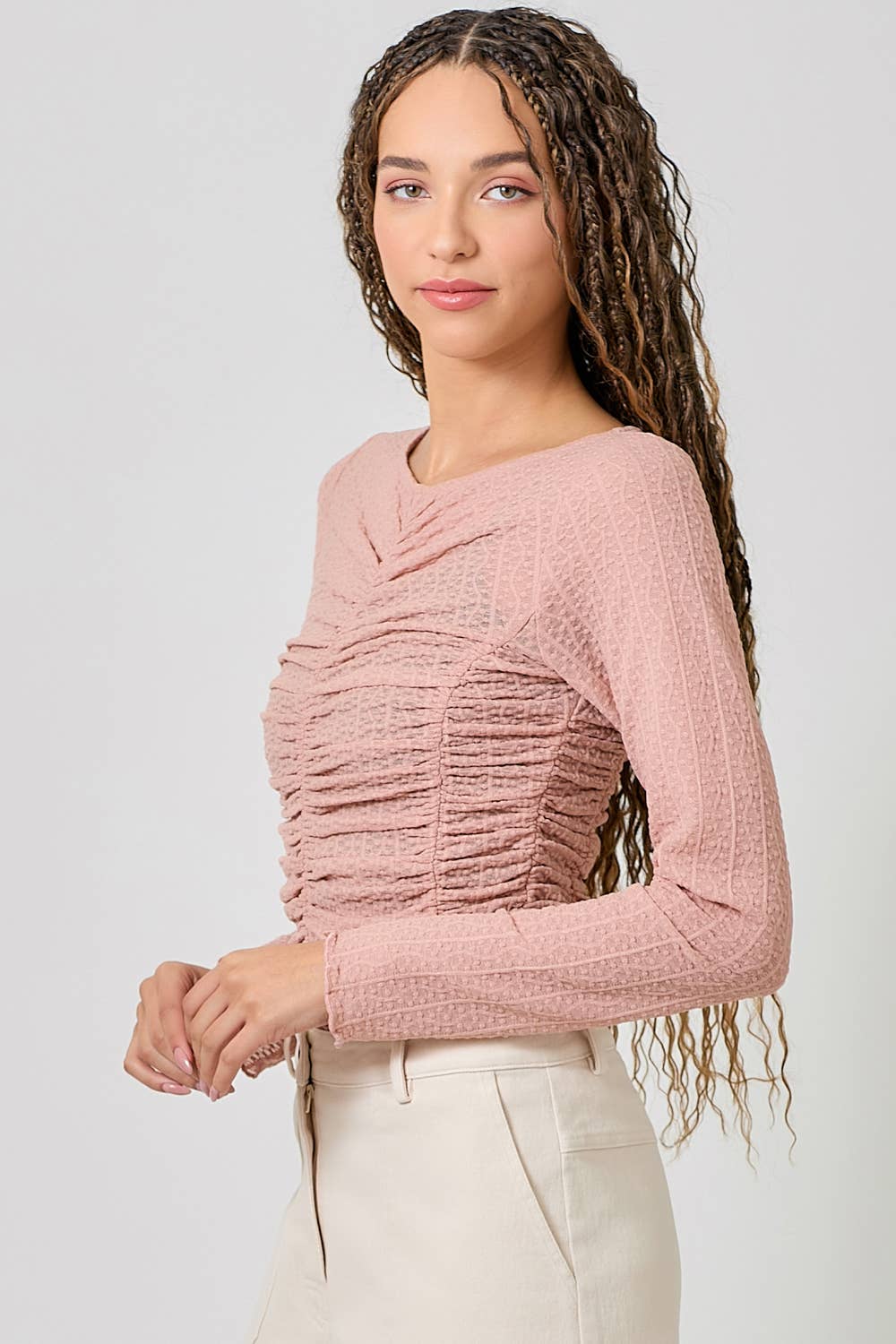 • Soft blush tone that pairs effortlessly with neutrals and denim