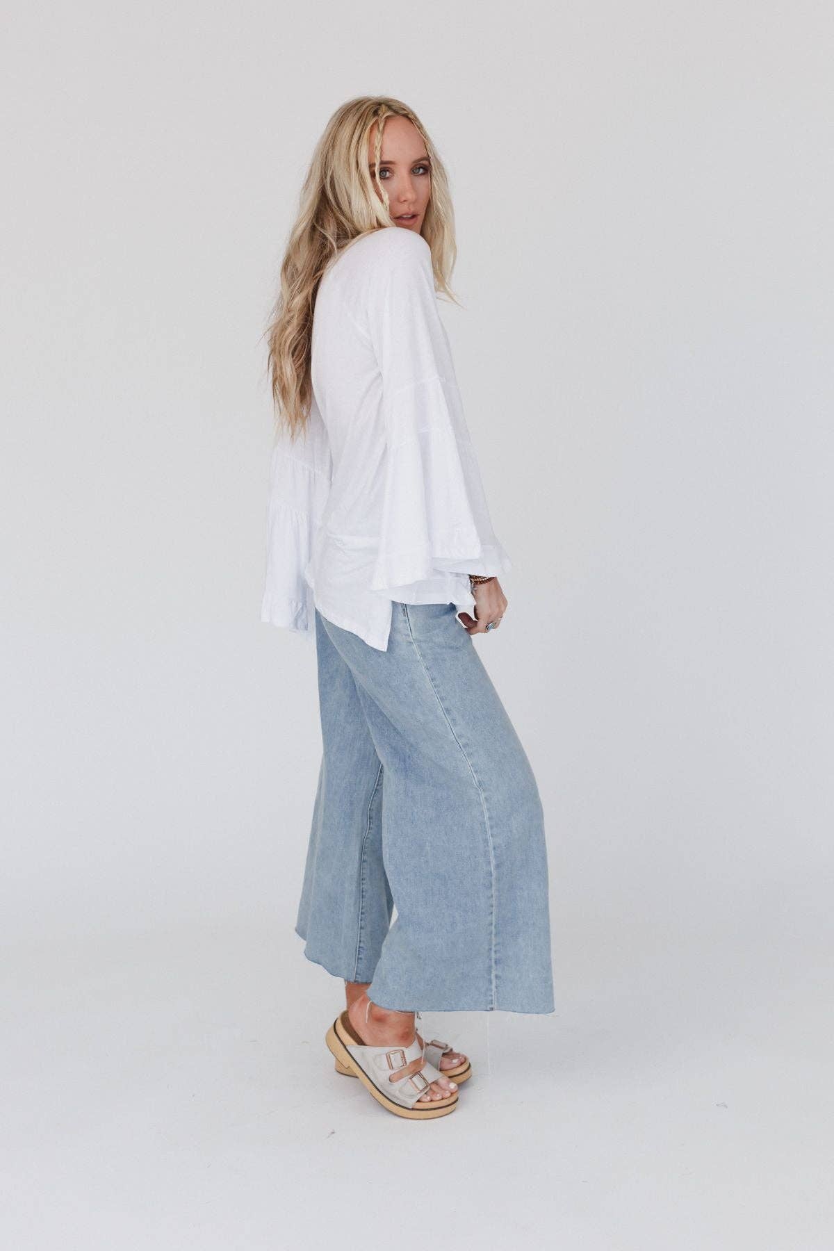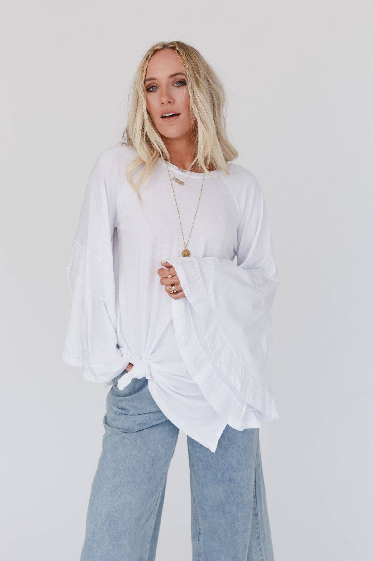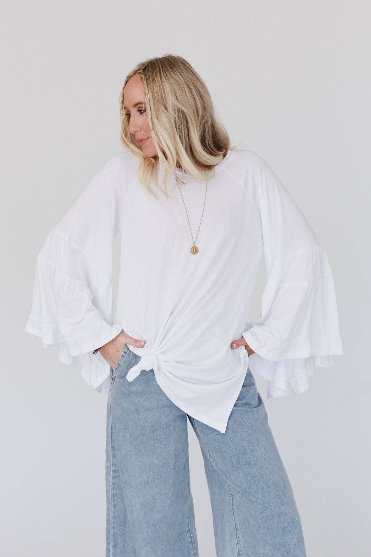 Three Bird Nest - Bell Sleeve Baseball Tee - White