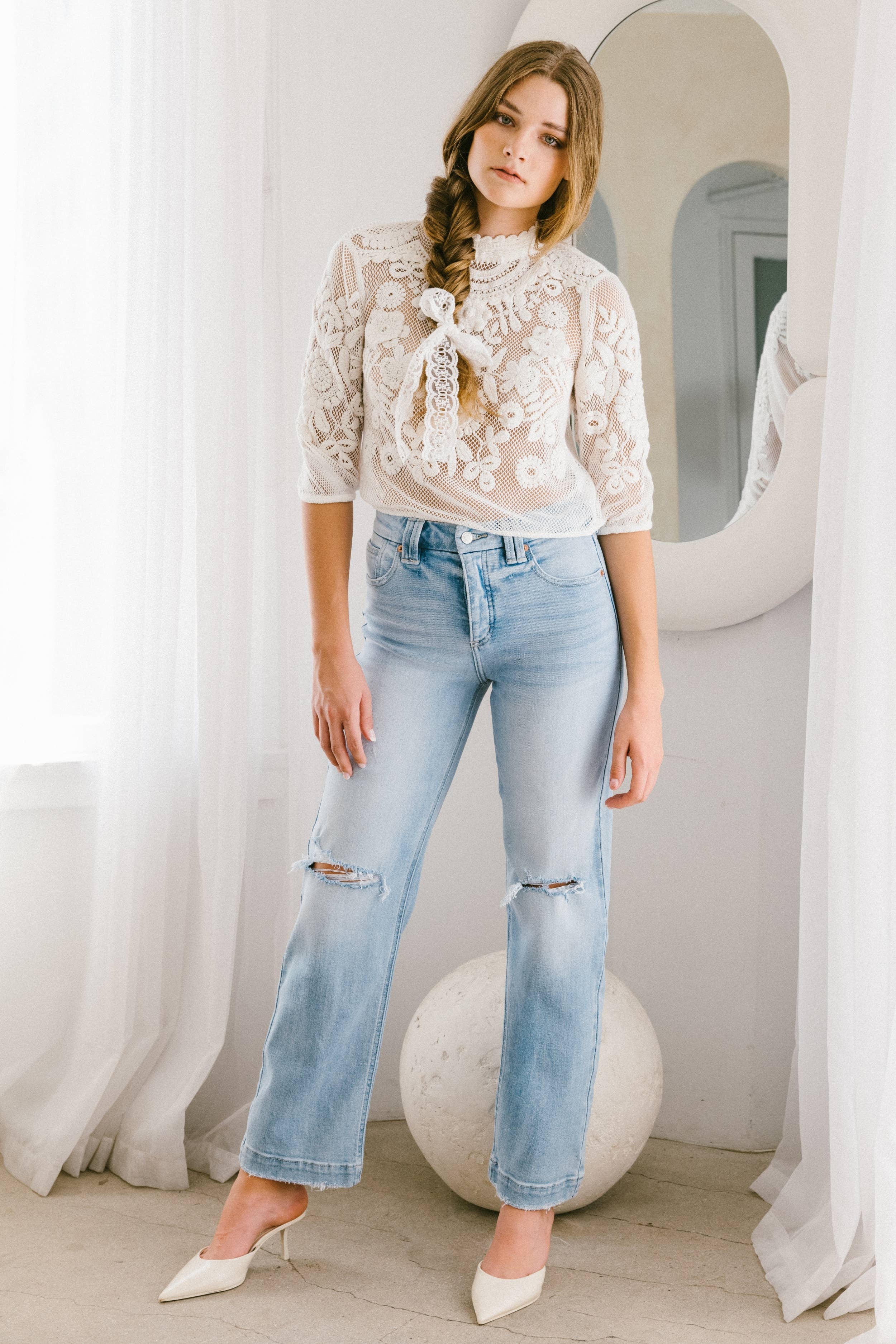 ARTEMIS VINTAGE - Sculpt & Straight Tummy Control Light Wash Distressed Jeans