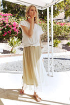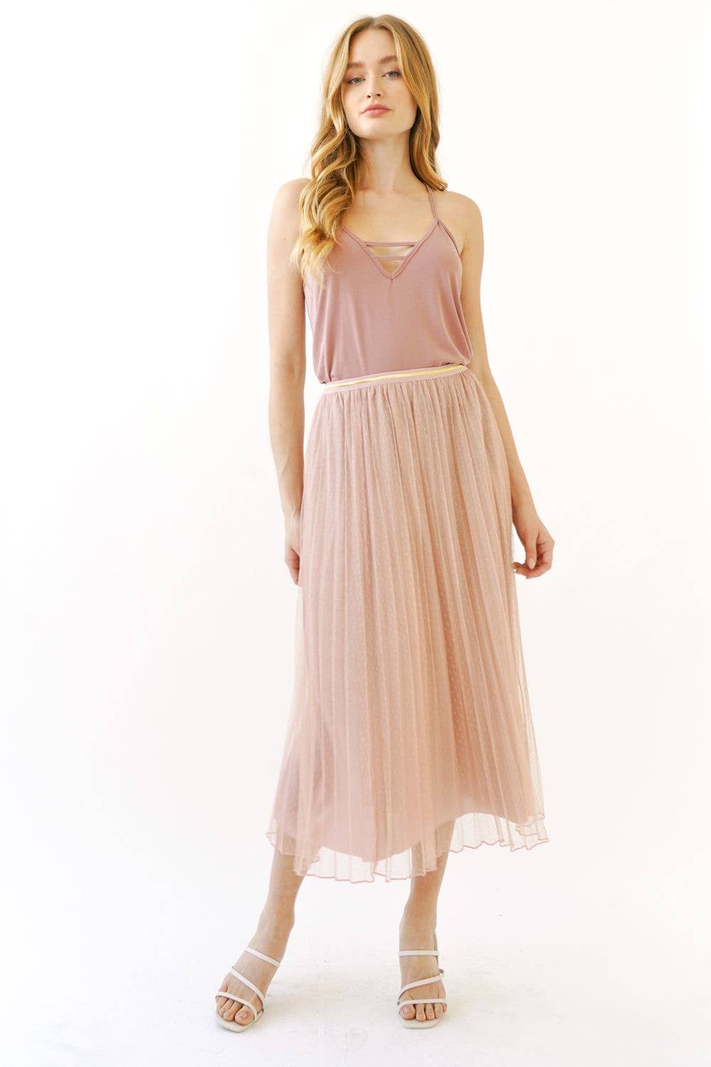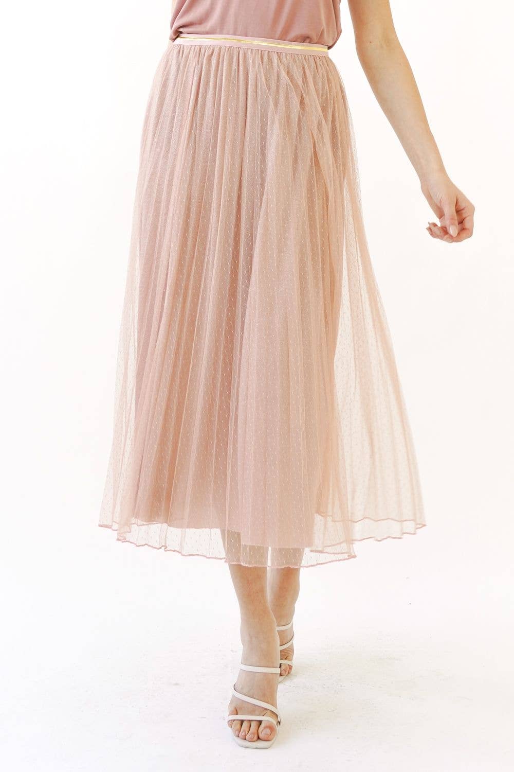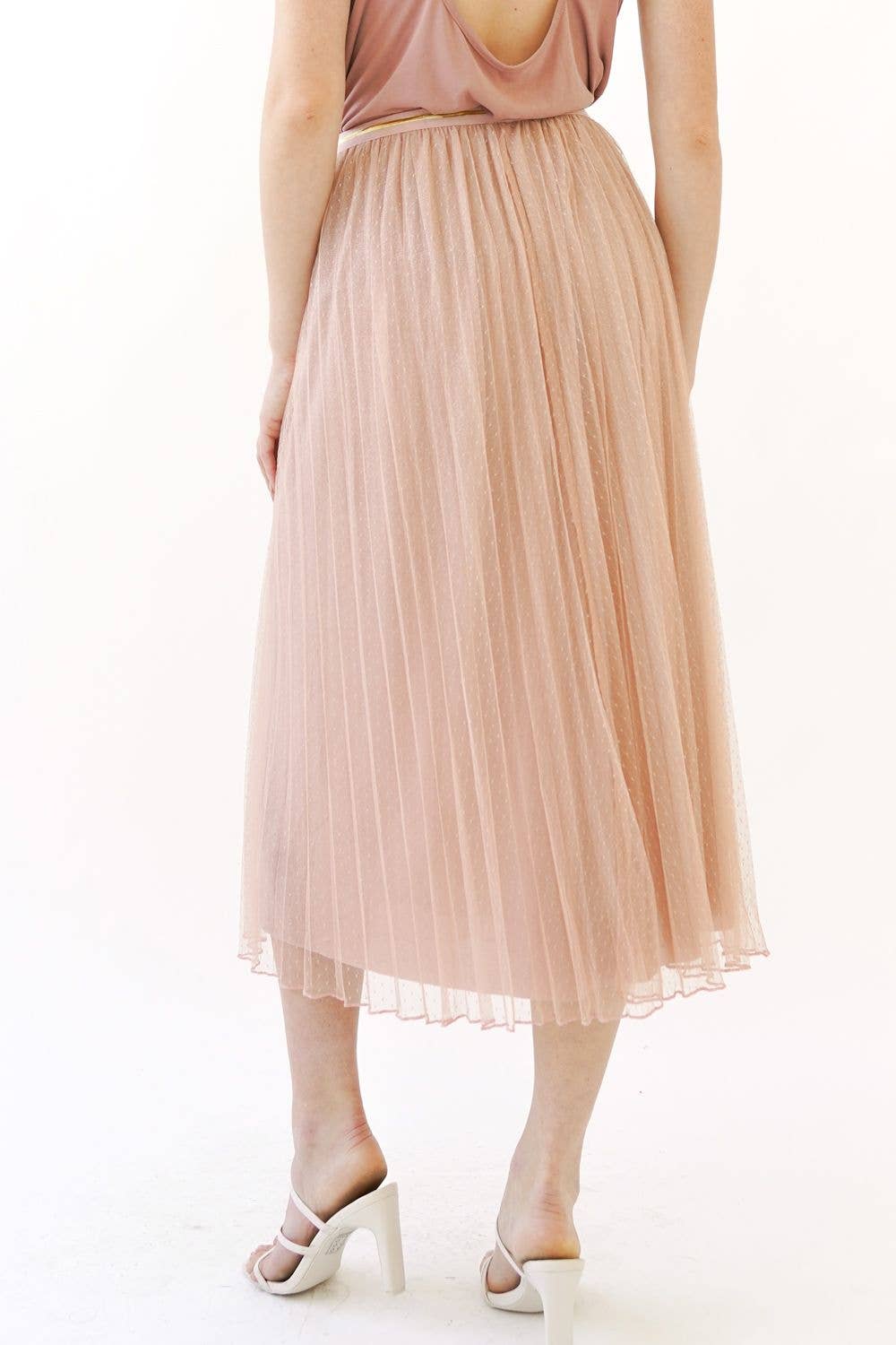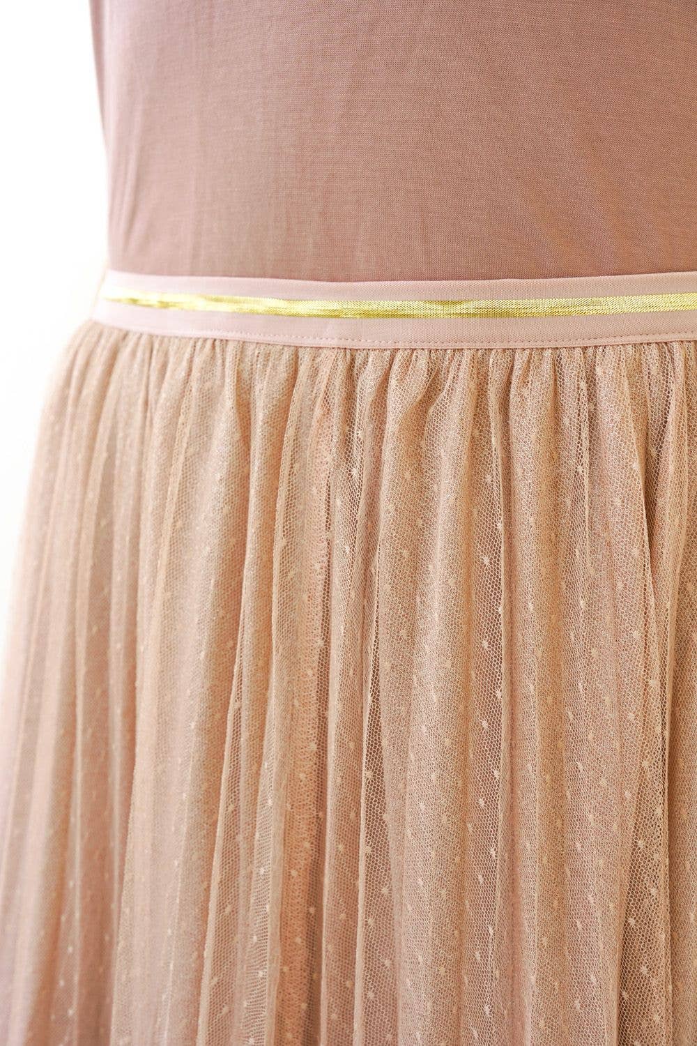Mystree - Champagne Daydream Pleated Tulle Midi Skirt