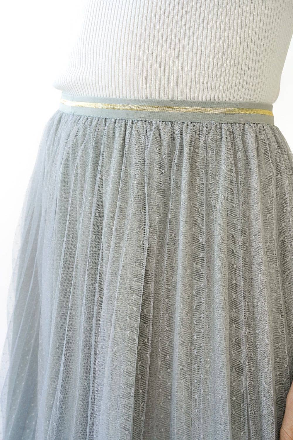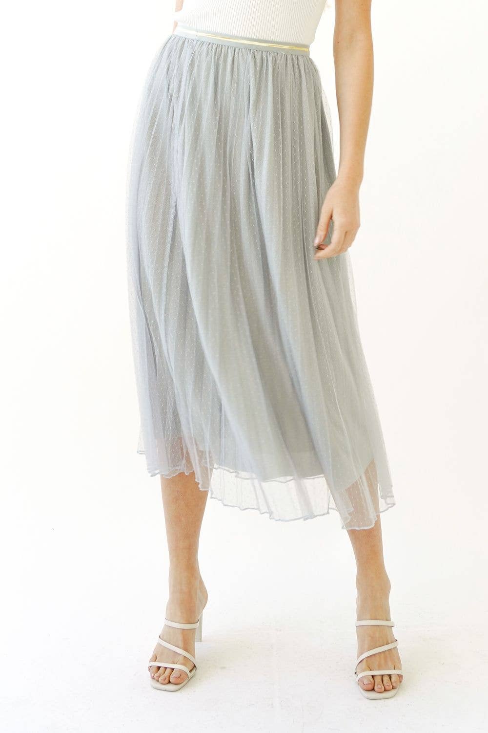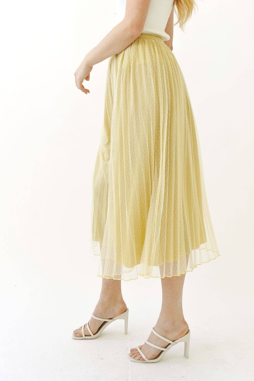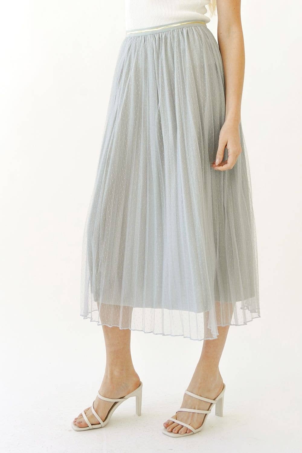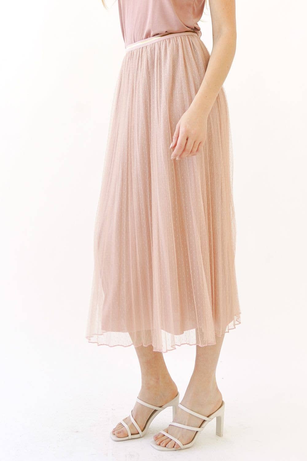 Mystree - Champagne Daydream Pleated Tulle Midi Skirt