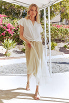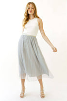 Float through your day in effortless elegance with the Champagne Daydream Pleated Tulle Midi Skirt. Designed with layers of soft, airy tulle, this skirt features delicate pleating that creates beautiful movement with every step. The comfortable elastic waistband offers an easy pull-on fit, while the fully lined interior ensures confident, worry-free wear.