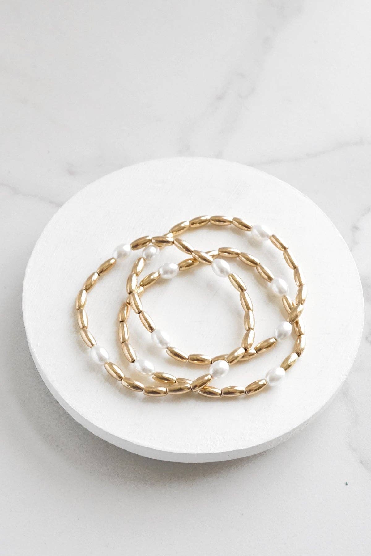 PennyLine inc - Gold tone and pearls beaded bracelet stack of 3 bracelets