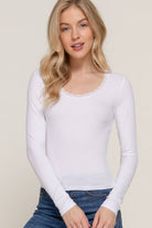 Active Basic | Active USA - Long Sleeve Scoop Neck with Lace Trim Rib Knit Top in White