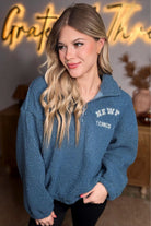 Serve up the perfect mix of comfort and style with the Le Lis Newport Tennis Club Fleece! This ultra-soft, sherpa-style pullover features a relaxed fit, a half-zip neckline, and embroidered "Newport Tennis Club" lettering for a sporty yet sophisticated vibe. The deep blue hue pairs effortlessly with everything from pleated tennis skirts to your favorite denim, making it a must-have for any casual-chic wardrobe.
