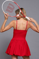 Bring your A-game in our Red Court Crush Active Dress — where sporty meets seriously cute. This fiery red mini features a sleek straight neckline, adjustable cami straps, and a flattering bubble-hem skirt with built-in shorts for worry-free movement. Whether you’re hitting the tennis court, running errands, or serving looks at brunch, this dress keeps you cool, confident, and effortlessly stylish. Pair it with sneakers for a casual day out or throw on a cropped jacket for a flirty, street-chic vibe.