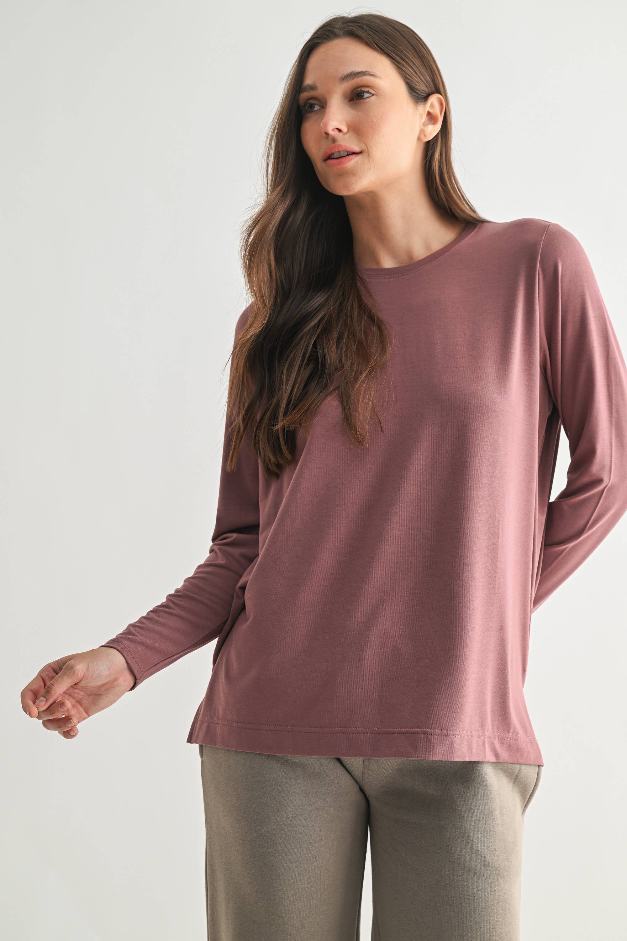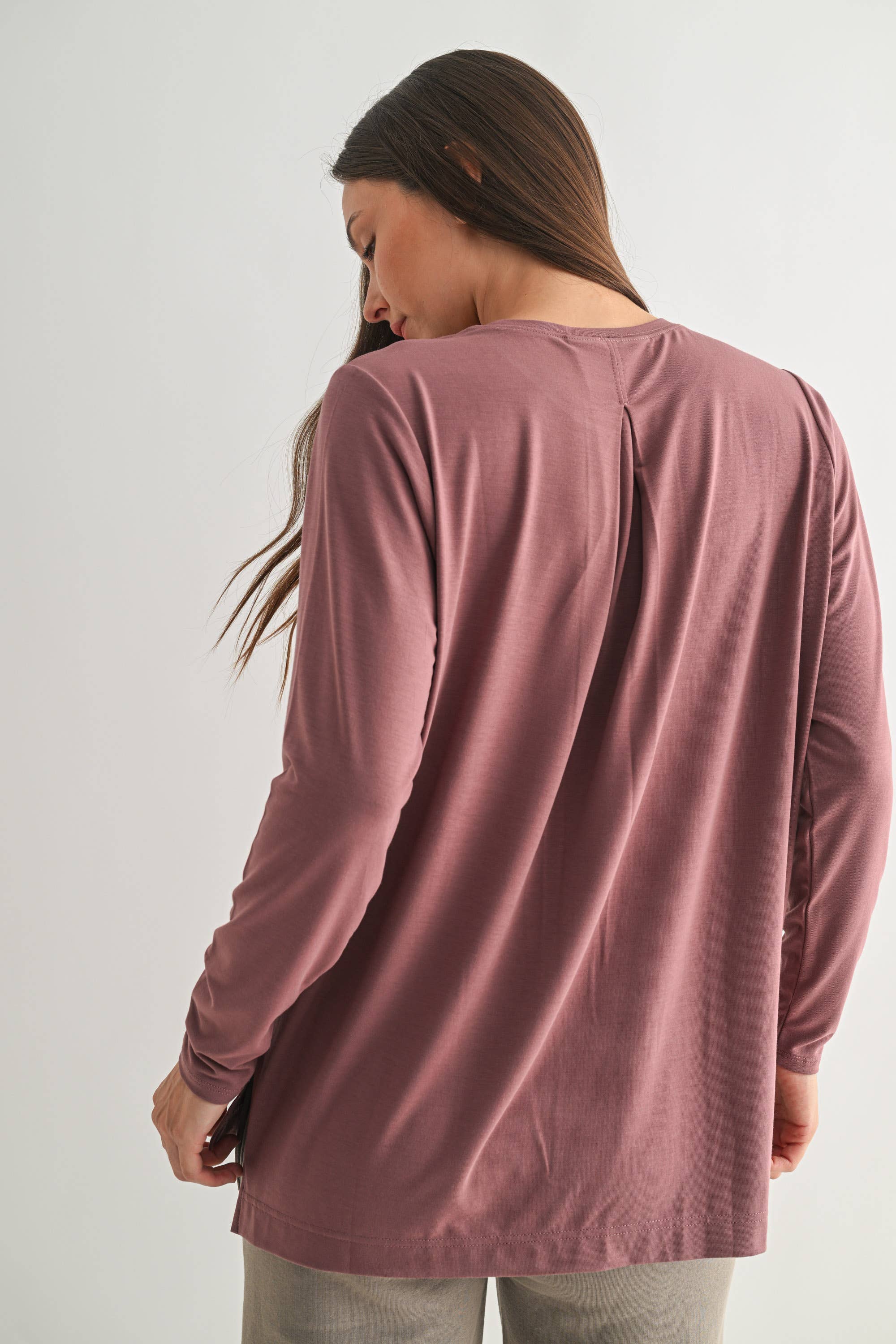 Flowy, refined, and feather-soft. Made from a silky-smooth polyester/modal blend, this top drapes beautifully with side slits and a subtle high-low hem for easy movement. A single back pleat adds an effortless touch of sophistication, making it perfect for dressing up or down. A closet staple you’ll reach for again and again. Luciana is 5'9", a size 2, and is wearing an S 67% polyester 28% modal 5% spandex