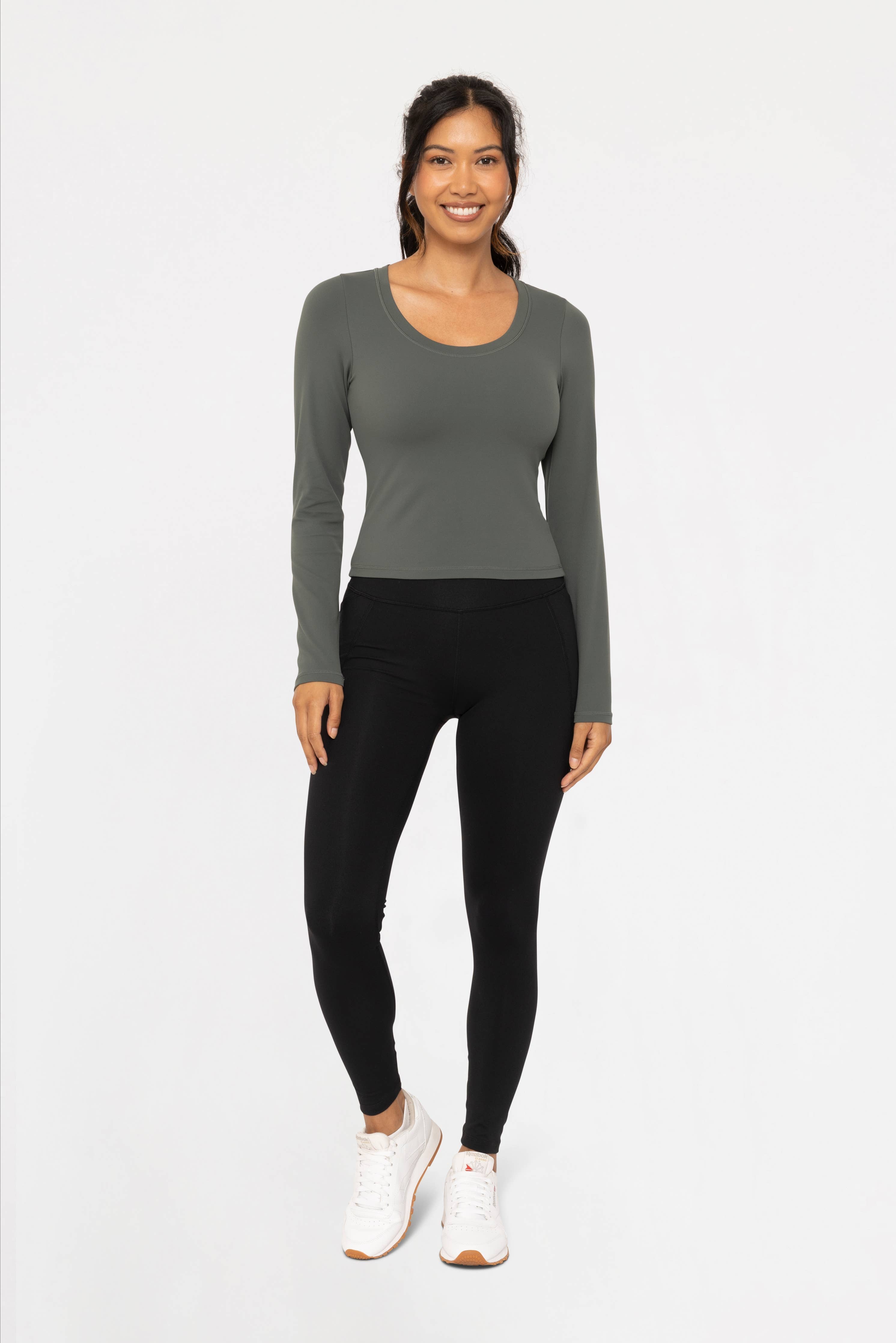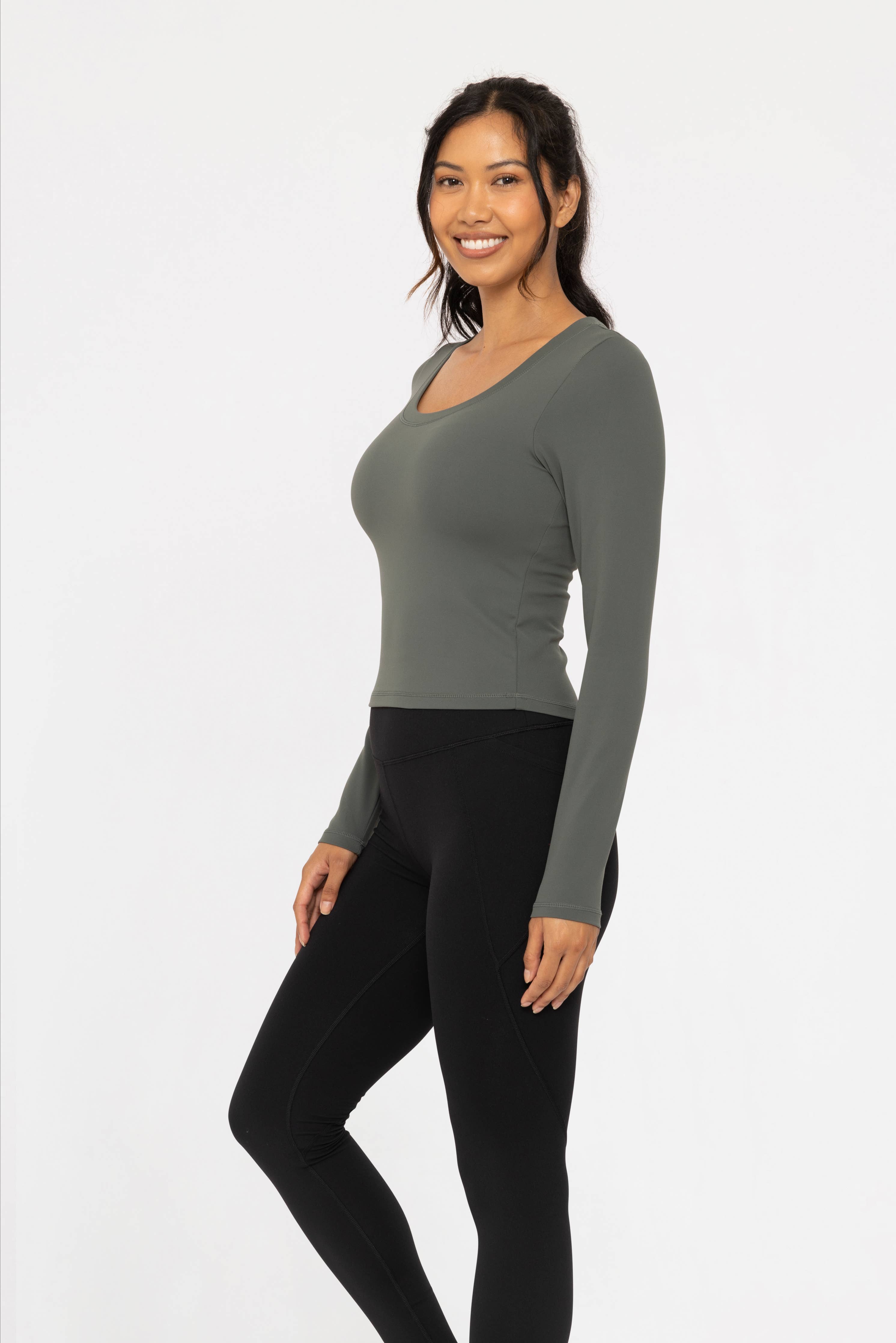 Mono B - Scoop Neck Active Long Sleeve: URBAN GREY