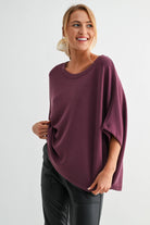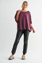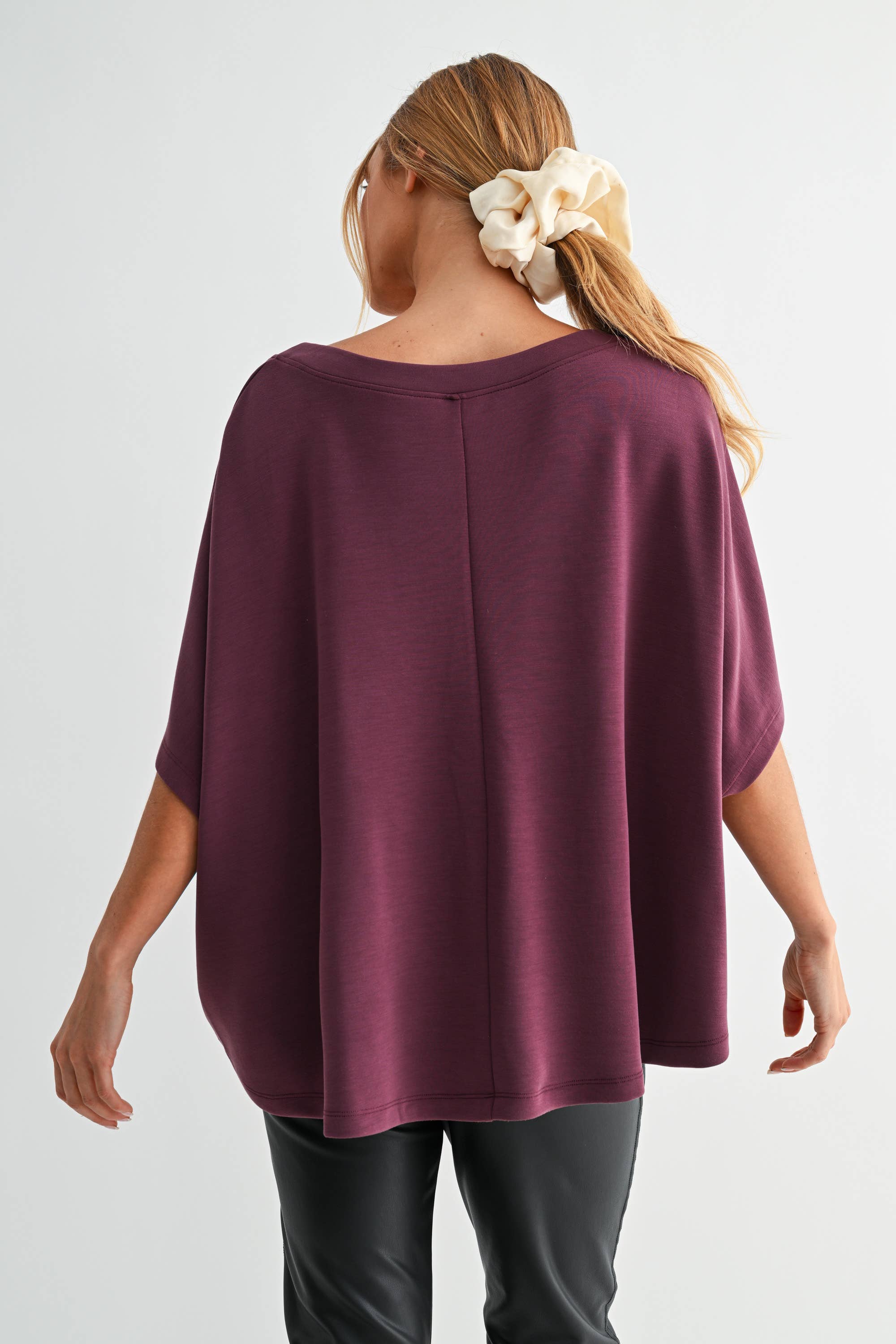 Lightweight and versatile, this top is your go-to for a polished yet comfortable outfit. Featuring a sophisticated boat neckline and dolman-shaped elbow-length sleeves, this airy top is perfect for crisp spring days. Its relaxed silhouette ensures ultimate comfort while maintaining an elegant vibe. Pair it with your favorite denim shorts for a casual look or match it with scuba pants or shorts for a coordinated style. Luciana is 5'9", a size 2, and is wearing an S 47% modal 47% polyester 6% spandex Machine wash delicate Dry flat