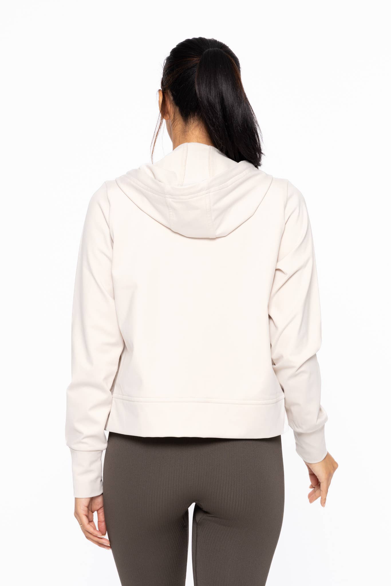 Stay warm and stylish in our hybrid micro fleece jacket! With a smooth outer with padded front panels in a matte leather look and soft micro fleece inner, this jacket has a full front zip, zippered hand pockets, a 3 panel hood, and thumbholes for maximum coziness.