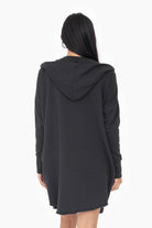This chic longline hoodie cardigan features an open front and wide cuffed sleeves, and is perfect for those autumn outings. Use the pockets to hold your mittens! Mineral wash. 60% cotton 40% polyester Garment dye.