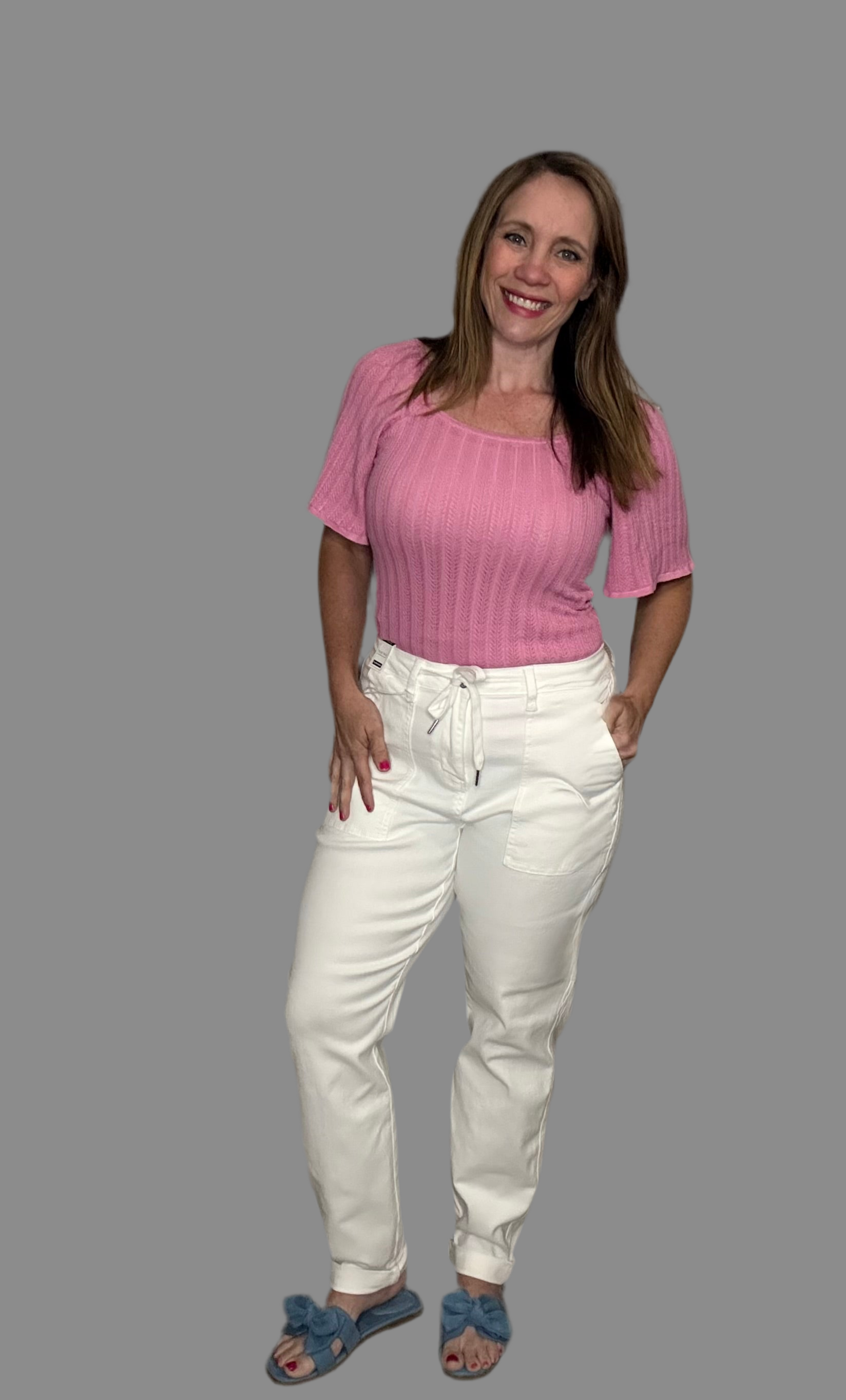 Judy Blue High-Waisted Utility Jogger Jeans – White