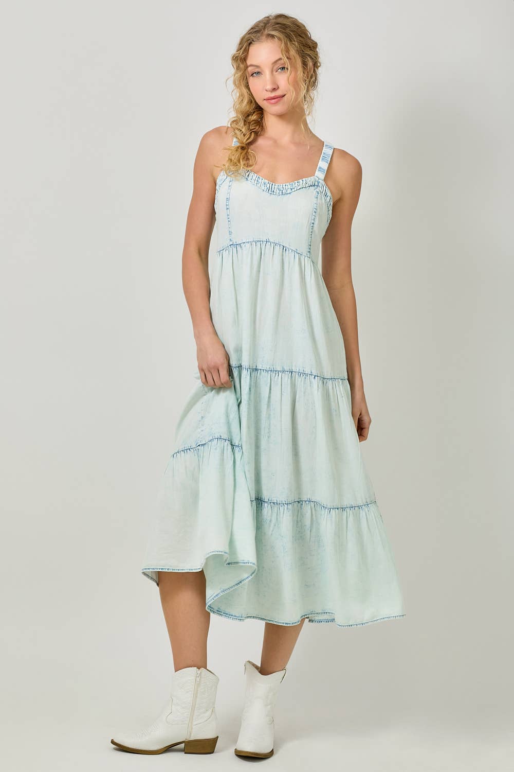 Mystree Washed Tencel Tiered Dress: Ice Blue