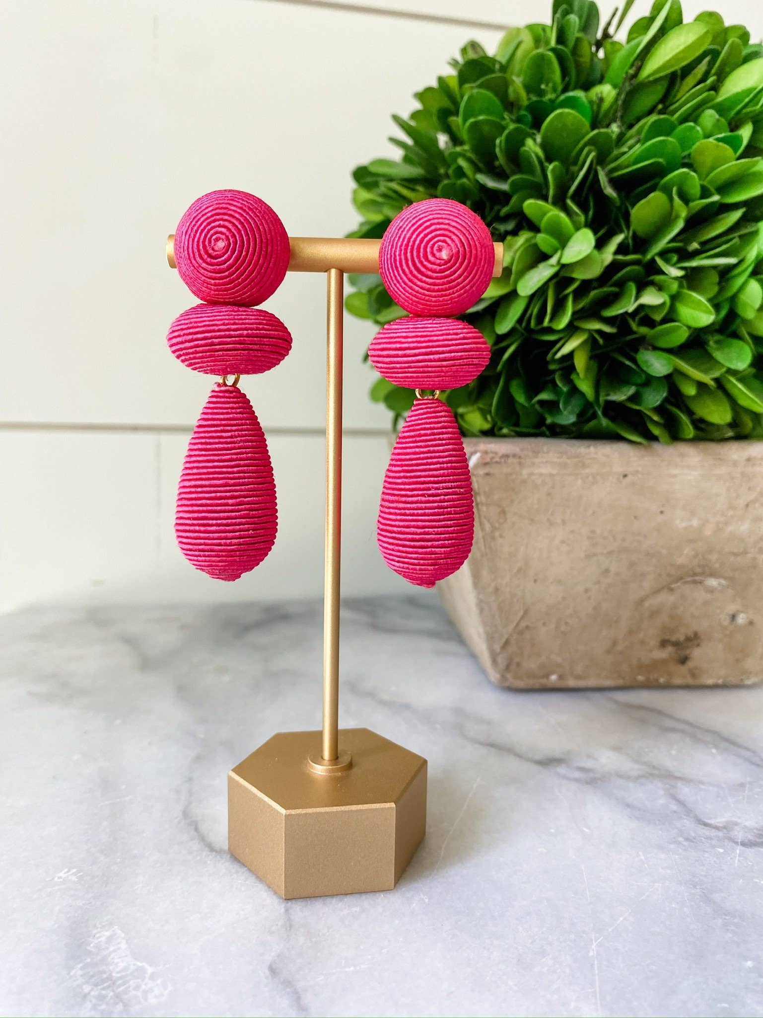 Add a vibrant pop of color to your outfit with the Hot Pink Thread Wrapped Drop Statement Earrings from Brookhaven Baubles. These eye-catching earrings feature a bold hot pink thread wrapped design, perfect for making a statement. Lightweight and comfortable, they are ideal for any occasion, from casual outings to special events.