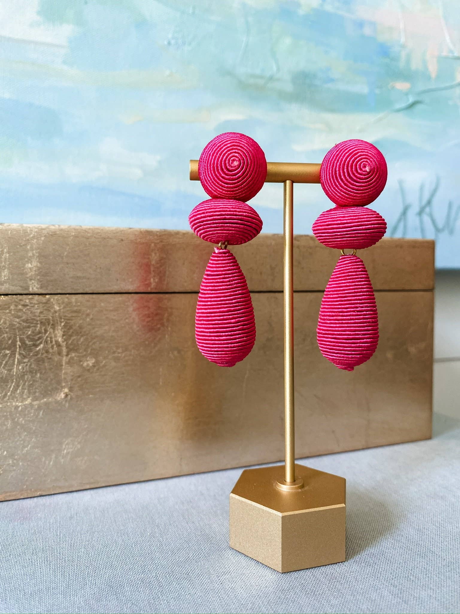 Hot Pink Thread Wrapped Drop Statement Earrings