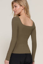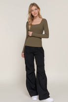Olive You Square Neck Double Layered Ribbed Knit Top