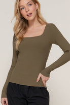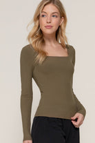 Chic, simple, and endlessly flattering — our Olive You Square Neck Double Layered Ribbed Knit Top by Active Basic | Active USA is the ultimate layering essential. This sleek long sleeve features a double-layered ribbed knit for a smooth, sculpted fit that hugs in all the right places. The square neckline adds a modern, feminine touch, while the rich army olive color keeps it effortlessly versatile. Style it tucked into denim for a casual day out or dress it up with leather pants and gold jewelry for a night-ready look.