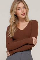 Your morning brew, but make it fashion. The Coffee Break Ribbed V-Neck Sweater by Active Basic | Active USA features a soft, stretchy ribbed texture and a flattering fit in a warm brown hue that feels like fall. Perfect for layering under shackets or pairing with boots and jeans for effortless charm.